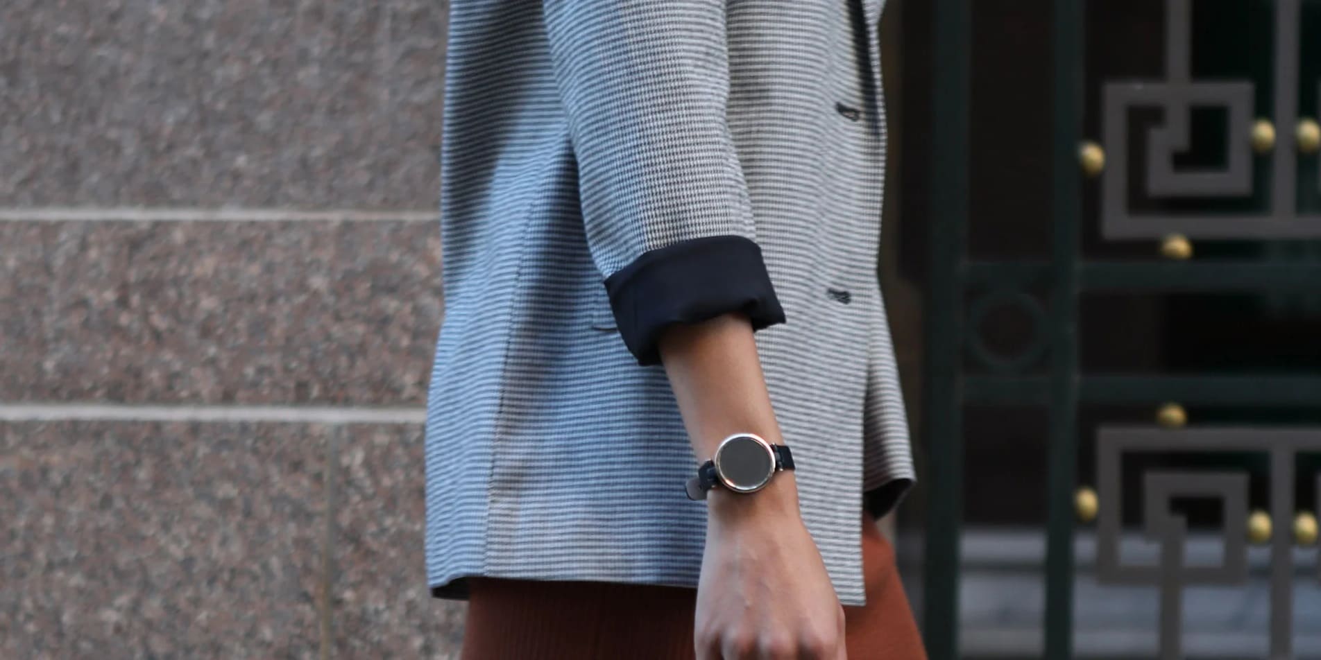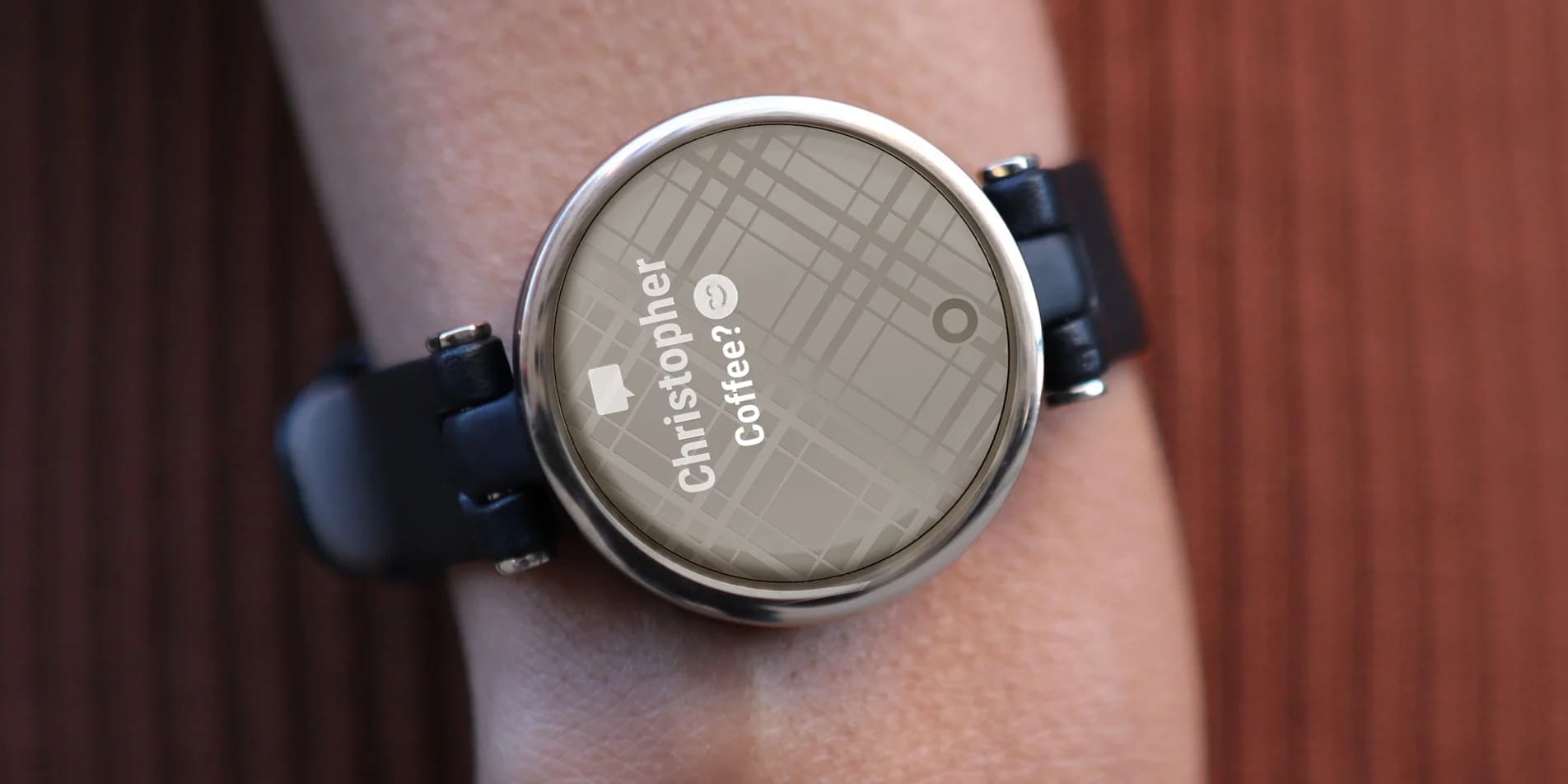 Lily Sport is a small smartwatch for women with a patterned touchscreen display, health and wellness tracking, and built-in sports apps.