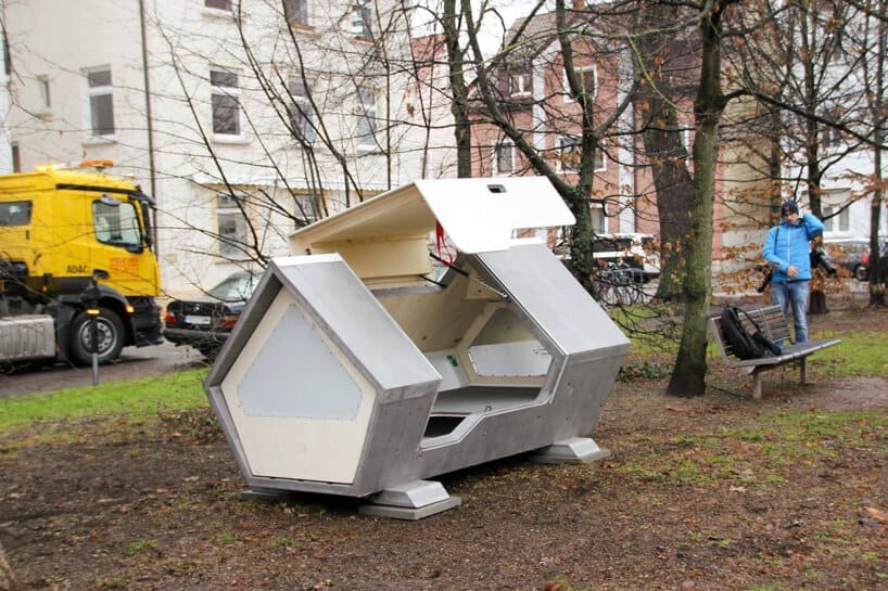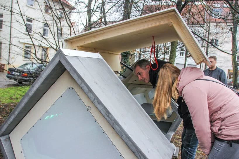 ulmer nest is a solar-powered sleeping pod to protect homeless people in winter