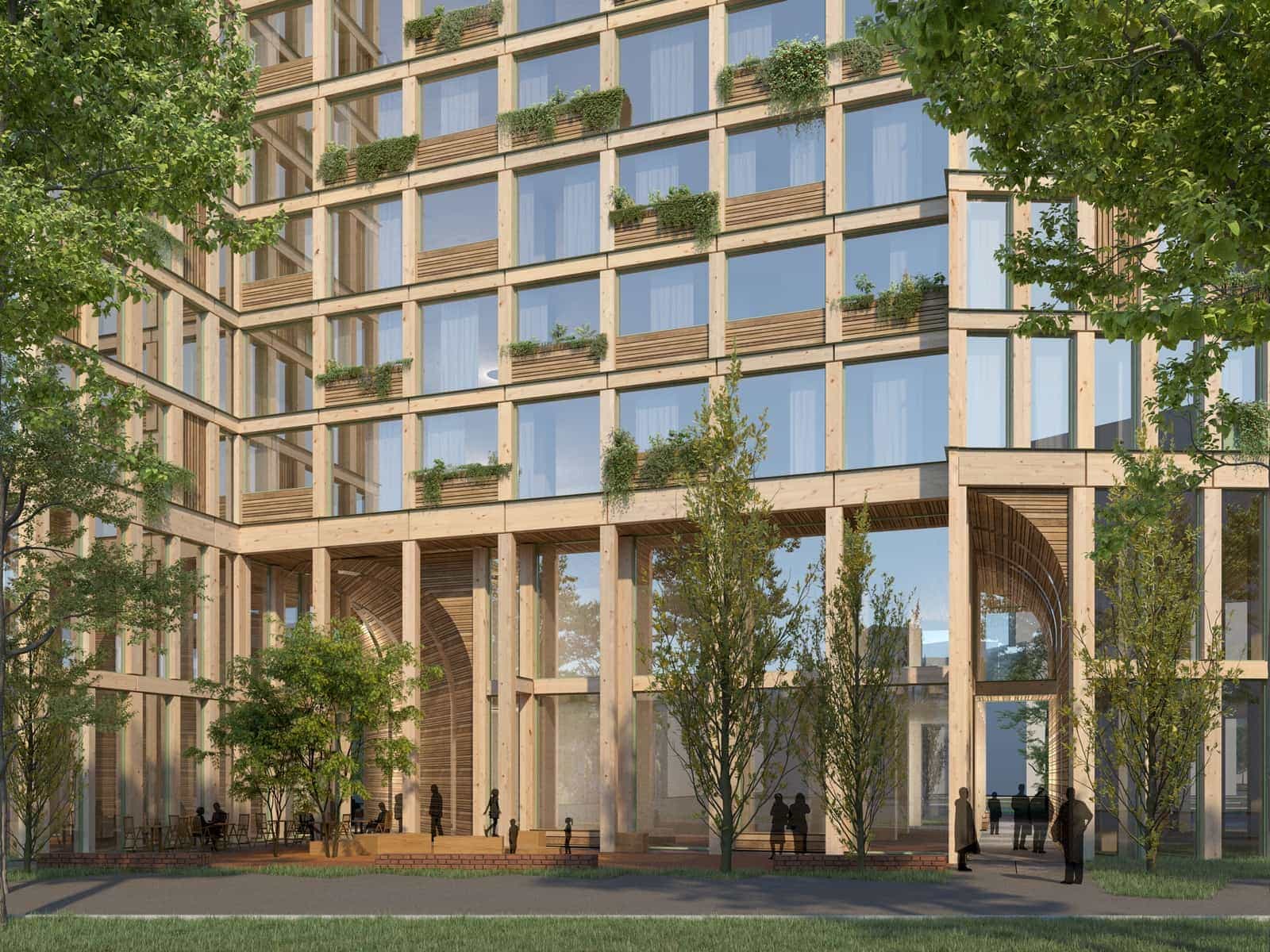 ๋ฒ ๋ฅผ๋ฆฐ ํฌ๋ก์ด์ธ ๋ฒ ๋ฅด๊ทธ(Kreuzberg)์ 98m๋ก ๋ ์ผ์์ ๊ฐ์ฅ ๋์ ๋ชฉ์กฐ ๊ฑด๋ฌผ์ด ๋ค์ด์ค ์์ ์ด๊ฑฐ๋ ์. ์ฐํธ ๋ฒ ๋ฅผ๋ฆฐ(WoHo Berlin)์ด๋ผ ๋ถ๋ฆด ์ด ๊ฑด๋ฌผ์ ์ค์ฌ๋ก์ ๊ฑด์ถ ์คํ๋์ค ๋งค๋ ์ํคํ ํฐ(Mad arkitekter)๊ฐ ๋์์ธํ ๊ฑด๋ฌผ์ธ๋ฐ์. ์๋ ์ํํธ๋ ๋ฌผ๋ก ์ ์น์, ๋นต์ง ๋ฑ ๋ค์ํ ๋ชฉ์ ์ ๊ฐ์ง ๊ณต๊ฐ์ด ํ๋์ ๊ฑด๋ฌผ ์์ ๋ชจ์ฌ ์๋ ํํ์ ๋๋ค. ๊ทธ๋ฌ๋ฉด์๋ ๋๋ฌด์ ์ ๋ฆฌ๋ฅผ ํ์ฉํด ๋ชจ๋ํ์ง๋ง, ๋๋ฌด๊ฐ ์ฃผ๋ ๋ฐ๋ปํ ๊ฐ์ฑ์ ์ ํ๋ ๋ ํนํ ๋ชจ์ต์ ํ๊ณ ์๋๋ฐ์. ๋์ฌ์ ๋ค์์ฑ์ ์ํด์๋ผ๋ ์ด๋ฐ ์๋๊ฐ ๋ง์์ง๋ฉด ์ข๊ฒ ๋ค์. ์ฝ์ง ์์ ๋์ ์ผ ์ ์๊ฒ ์ง๋ง, ์ฒํธ์ผ๋ฅ ์ ์ธ ๋์์ ํ๊ฒฝ์ ๋ฐ๊ฟ ์ ์์ ํ ๋๊น์.