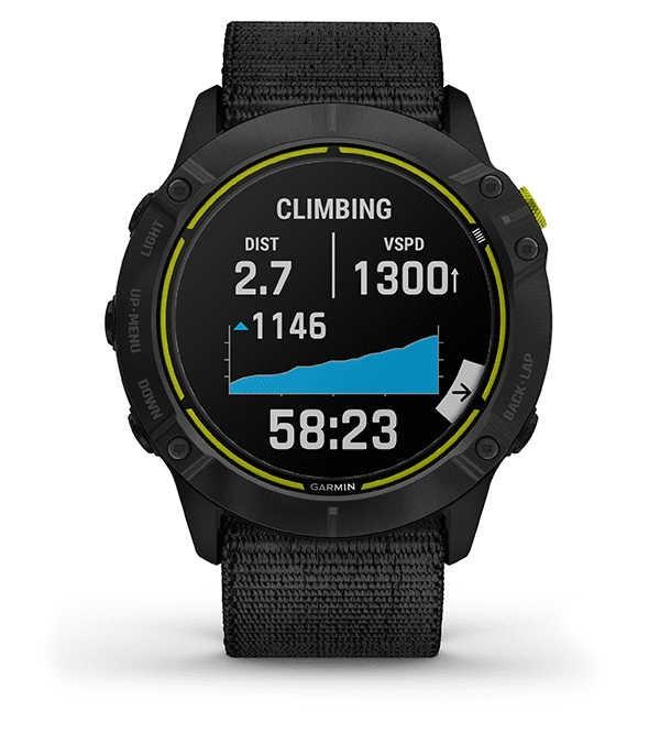 Garmin Enduro™ features a Power Glass™ solar charging lens that extends battery life, lightweight nylon strap, and other performance features built for the extreme endurance athletes.