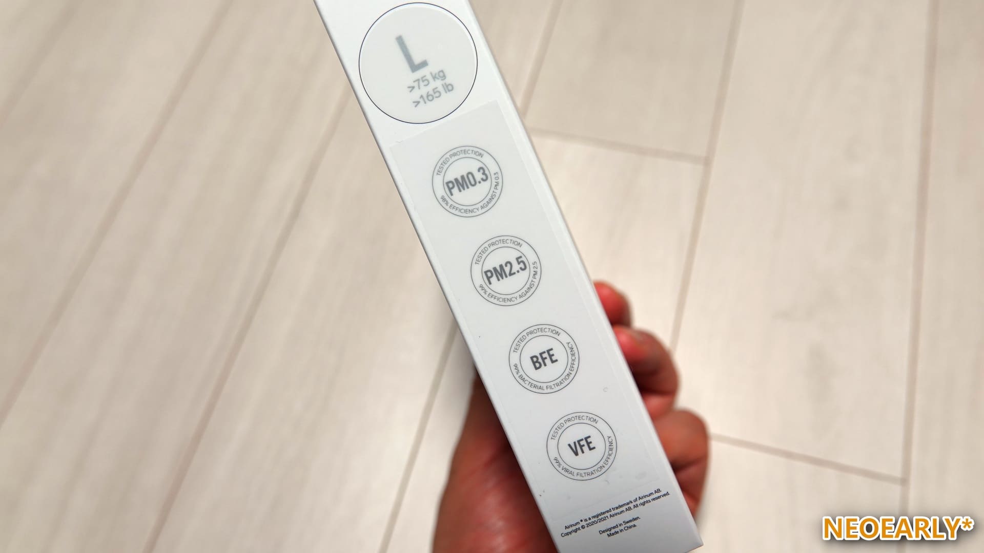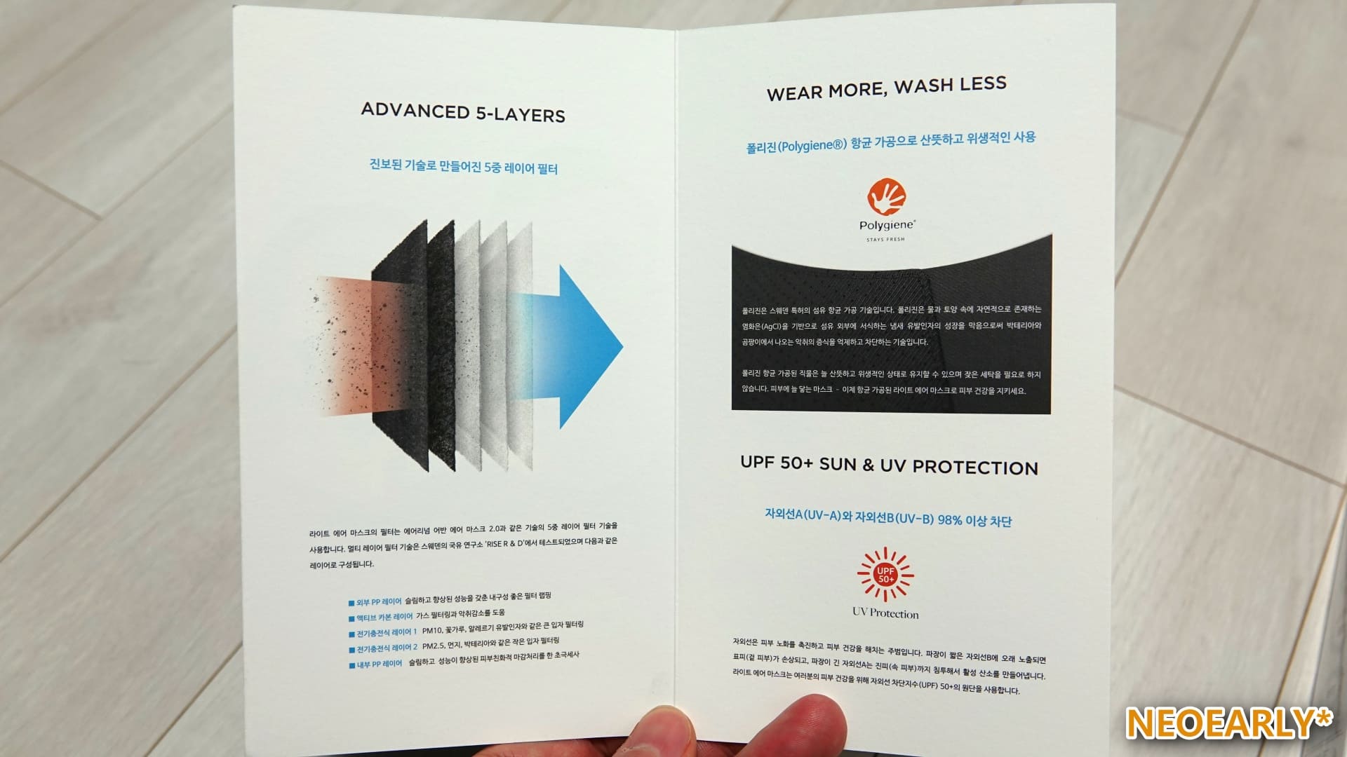 ธ์ฆํผ์ด ์ ์ฉ๋ ์ตํฐ๋ฉ ํํฐ๋ ํ์ฑ ํ์์ธต๊ณผ ๋ฏธ์ธ์ฌ์ ๋ ์ด์ด ๋ฑ์ ์ธต์ธต์ด 5์ค ๊ตฌ์กฐ๋ก ๋์ด ์๊ณ , PM0.3, PM2.5, KN95 ๋ฑ ๋ค์ํ ๊ตญ์ ๊ท๊ฒฉ ํ
