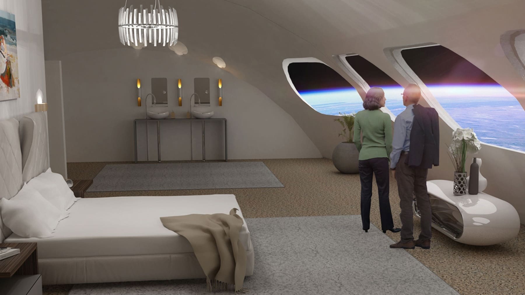 ์ผ๋ฐ์ ์ธ ํธํ ์ด ๊ทธ๋ ๋ฏ ๋ ์คํ ๋๊ณผ ๊ทน์ฅ, ์คํ์ ๊ฐ์ค์ 24๊ฐ์ ๋ชจ๋๋ก ๋๋ ๋ฐฐ์นํ๊ณ 500~550km ์๊ณต์ ์ฐ์ฃผ ๊ถค๋์ ๋ง๋ค์ด 400์ฌ ๋ช ์ ์๋์ ๋ฐ๊ฒ ๋ค๋ ๊ฒ ๊ทธ๋ค์ ์๊ฐ์ธ๋ฐ์. SF ์ํ์์ ํํ ๋์ค๋ ๊ฒ์ฒ๋ผ ํ์ ํ๋ฉด์ ์ด๋ ์ ๋ ์ค๋ ฅ์ ๋ง๋ค์ด ๋ด๊ฒ ๋ค๊ณ ํ๋ค์. ๊ทธ๋ค์ด ์๊ฐํ ์ด๋ฏธ์ง๋ฅผ ๋ณด์๋ฉด ์์๊ฒ ์ง๋ง, ์ง๊ตฌ์์์ฒ๋ผ ์ค๋ ฅ ํ์์ ์ํํ ์ ์๋ ๋ชจ์ต์ ๊ทธ๋ฆฌ๊ณ ์์ฃ .