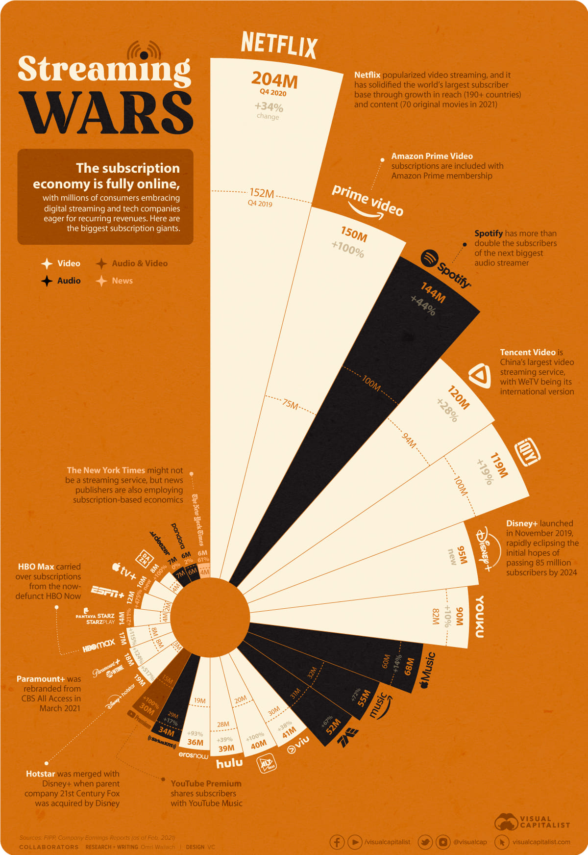 μ¬λλ€ μ¬μ΄μ 거리 λκΈ°κ° λΉμ°ν κ²μ΄ λλ©΄μ μ½λ‘λ19 μλμ μΈν°λ·μ μμ²λ νμ λ°ννκ³ μμ΅λλ€. κ΄λ ¨ μ°μ μ κ·λͺ¨λ κΎΈμ€ν μ»€μ Έκ°κ³ μ±κ³Όλ₯Ό λ΄κ³ μλλ°μ. λ¨κ±°μ΄ μΈν°λ· μΈμμμλ λμμκ³Ό μμ μ μ€νΈλ¦¬λ°μΌλ‘ λ³΄κ³ λ£λ μΌμ΄ λ λ§μμ§κ³ μΌμνλμ΄ κ°κ³ μμ£ ? VISUAL CAPITALISTκ° μ 리ν μ΄ μΈν¬κ·Έλν½μ κ·Έλ κ² λ¨κ±°μ΄ μ€νΈλ¦¬λ° μμ₯μ λκ³ μ²¨μνκ² λ§μκ³ μλ μ 체λ€μ ꡬλ μμλ₯Ό λΉκ΅νκ³ μμ΅λλ€.