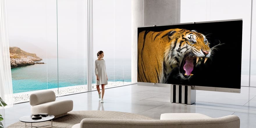 νΉν΄μ ν₯λ―Έλ‘μ΄λ° νμμ κ±°μ€ λ°λ₯ λ°μ μ¨μ΄ μλ€κ° νμ΄λμ νΌμ³μ§λ©΄μ TVκ° λλ ꡬ쑰λκ΅°μ. λ§μΉ λ³νμ²λΌ νΌμ³μ§λ κ² μΈμμ μΈλ° κ·Έλ€μ§ μ€μ©μ μΌλ‘ 보μ΄μ§λ μμ§λ§, μ μ΄μ 165μΈμΉλ λλ λν TVλ₯Ό ꡬμ