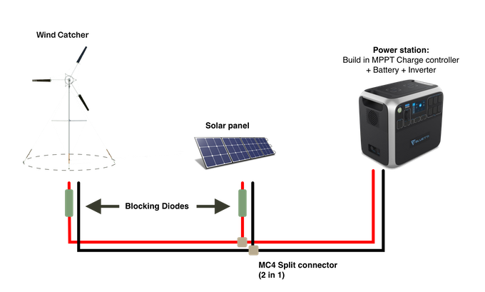 Power your gear Connect Wind Catcher to a power input port on your portable generator and start charging the battery bank. The portable generator can power or charge your gear! Wind Catcher is compatible with most portable generators - see technical info a