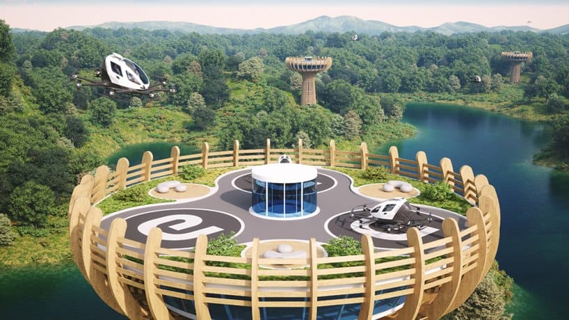 ์ดํญ๊ณผ ์์ก๊ณ ์ค๊ตญ, ๋ชฐ๋๋ธ, ์๋์๋ฏธ๋ฆฌํธ, ์ดํ๋ฆฌ์ ๋ฑ์ ์ง์ถ์ ๊ณํ ์ค์ธ GZDG(Giancarlo Zema Design Group)๊ฐ ์ค๊ณํ ๋๋ก ํ์น์ฅ(Vertiport) ๋์์ธ ์ฝ์ ํธ ๋ฐ์ค๋ฐฅ(Baobab)์ด ์ผ๋ง ์ ๊ณต๊ฐ๋ ๊ฑด๋ฐ์. ์ดํญ์ ๋ฌด์ธ ์ฃผ์จ๋นํ ๋๋ก EH216 ์น๊ฐ์ ์ํด ๋ง๋ค์ด์ง ์ด ํ์น์ฅ์ ์ฃผ๋ณ์ ๋ ๋ฉด์ ๊ด๊ด์ ํ๋ ์์๋ฅผ ์ก์ผ๋ ค๋ ์ฝ์ ํธ๋ต๊ฒ ๋ฐ์ค๋ฐฅ ๋๋ฌด์์ ์๊ฐ์ ์ป์๋ค๋ ๋ ํนํ ๋์์ธ์ ํ๊ณ ์๋๋ฐ์. 30m ๋์ด์ ์๊ฐ ๋๊ณ ๋ฐ์ด ์ข์์ง๋ ๋๋ฌด์ฒ๋ผ ์๊ธด ์ด ํ์น์ฅ์ ๋๊ธฐ์ค๊ณผ ์นดํ, ๋ ์คํ ๋ ๋ฑ์ ๋ถ๋์์ค์ ๊ฐ๊ณ ์๊ณ , ์ฅ์์ 3๋์ ๋๋ก ์ด ์ฐฉ๋ฅํ ์ ์๋ ๊ณต๊ฐ์ด ์๋ฆฌ ์ก๊ณ ์๋๊ตฐ์.