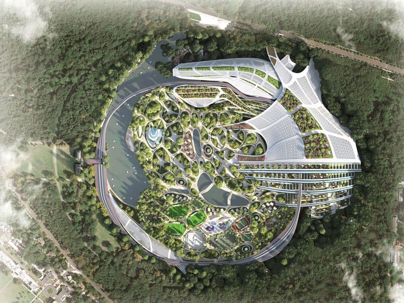 rescubika envisions a green city of tomorrow built around a lake outside paris