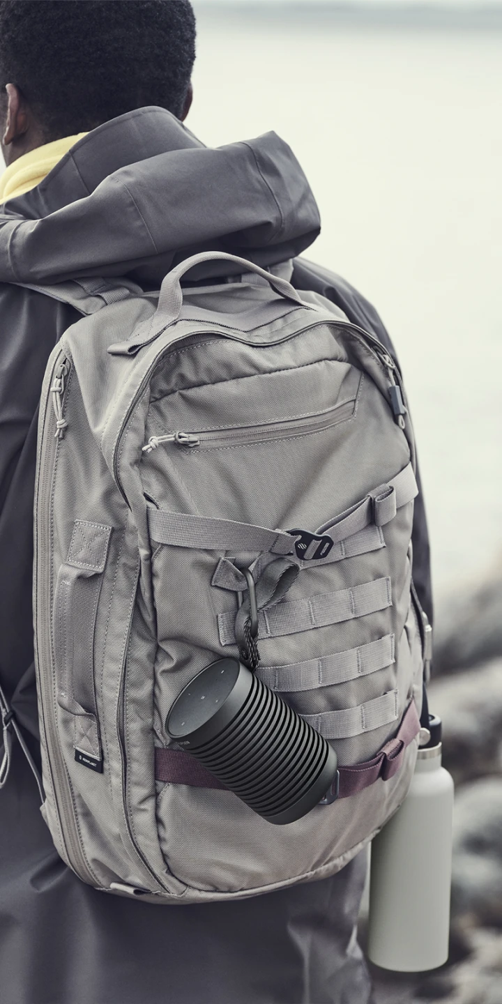 Discover Beosound Explore, a waterproof Bluetooth speaker ready for any adventure. Up to 27 hours of playtime, powerful bass and 360-degree sound.