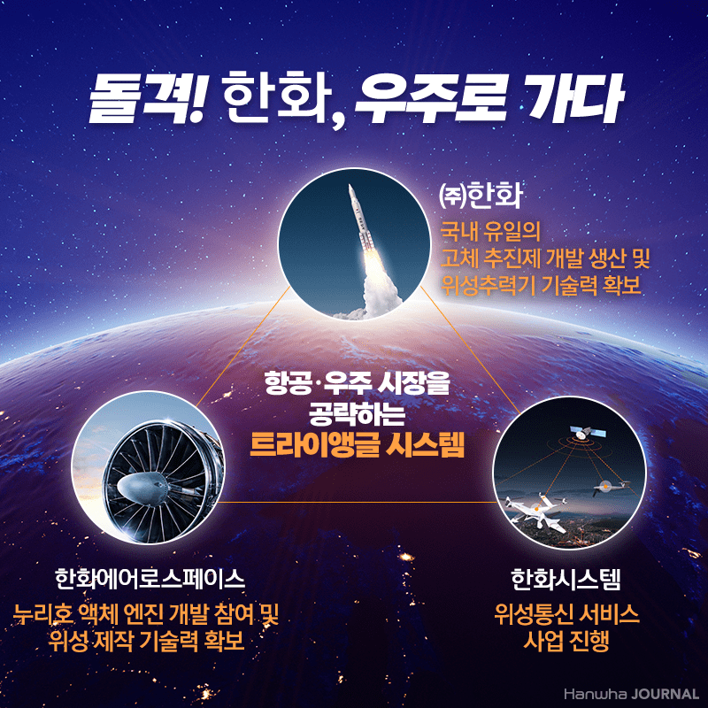 λ±μ νμ ν©μ³ μ€νμ΄μ€ νλΈ(Space Hub)λ₯Ό μΆλ²μν¨ κ±΄λ°μ. μΈκ³΅μμ±μ μ°μ£Όλ‘ λμ μ¬λ¦΄ κ³ μ²΄ μΆμ§ κΈ°κ΄κ³Ό μμΈ μ μ΄ κΈ°μ μ κ°μ§ νν, λνλ―Όκ΅ μ°μ£Ό κ°λ°μ μμ΄μ½μΈ λ리νΈμ νν, λ°ΈλΈ, μ‘체 μμ§ λ±μ μ μνκ³ κ°λ° μ€μΈ ννμμ΄λ‘μ€νμ΄μ€, μ κΆ€λ μμ±ν΅μ μλΉμ€λ₯Ό μ€λΉ μ€μΈ ννμμ€ν
