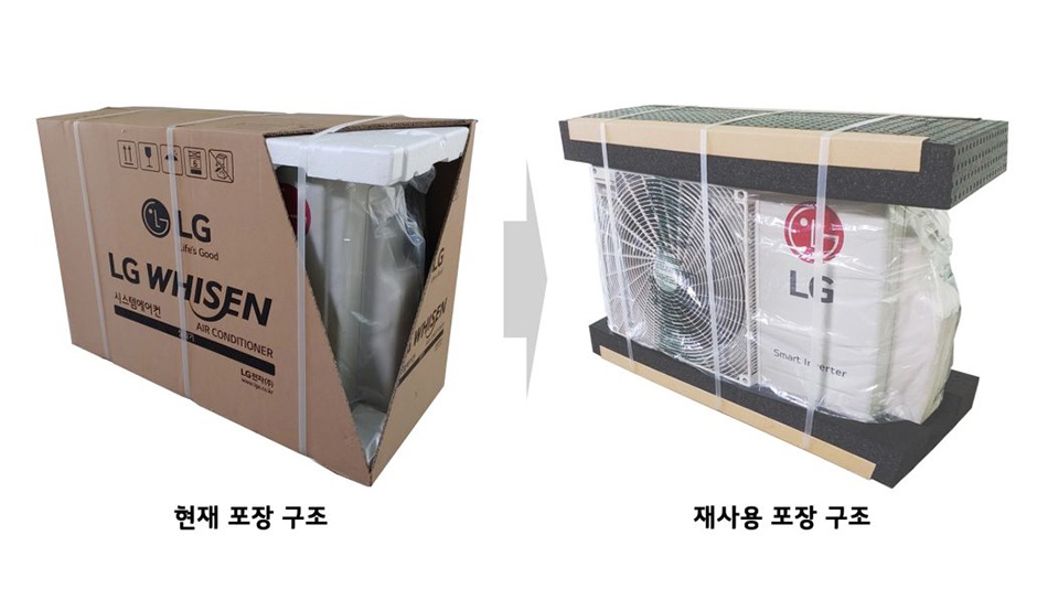 LG์ ์๋ ์๋ฒ์ฌ์ ์ ํตํด LG ํ์ผ ์์คํ ์์ด์ปจ์ ๊ตฌ์ฑํ๋ ์ค์ธ๊ธฐ์ ํฌ์ฅ ๋ฐ์ค๋ ๋ฐํฌ์คํฐ๋กํผ(Expanded Polystyrene)๊ณผ ๊ฐ์ 1ํ์ฉ ํฌ์ฅ์ฌ ๋์ , ์ฌ์ฌ์ฉ์ด ๊ฐ๋ฅํ๋ฉด์๋ ์์ถฉ ์ฑ๋ฅ๊ณผ ๋ด๊ตฌ์ฑ์ด ๋์ ๋ฐํฌํ๋ผ์คํฑ(Expanded Polypropylene)์ ์ฌ์ฉํ๋ฉฐ ํ๊ธฐ๋ฌผ์ ์์ฒ ๊ฐ๋์ ์ค์ฒํ๊ณ ์๋ค๊ณ ํด์. ์ด์ ๋ฐ๋ผ ๊ธฐ์กด์๋ ํ ๋ฒ ์ฌ์ฉํ ํ ์ ๋ ํ๊ธฐํด์ผ ํ๋ ํฌ์ฅ์ฌ ์ผ๋ถ๋ฅผ ์ฌ์ฌ์ฉํ ์ ์์ด ์ฐ๊ฐ ์ฝ 65ํค์ ์ข ์ด์ 22ํค์ ๋ฐํฌ์คํฐ๋กํผ์ ์ค์ด๋ ๊ฒ ๊ฐ๋ฅํด์ก๊ณ ์. LG์ ์๋ ํฅํ ํฌ์ฅ์ฌ ์ฌ์ฌ์ฉ์ ์์คํ ์์ด์ปจ ์ค์ธ๊ธฐ ์ ์ ํ๊ตฐ์ผ๋ก ํ๋ ์ ์ฉํด ๋๊ฐ ๊ณํ์ด๋ผ๊ณ ํฉ๋๋ค.