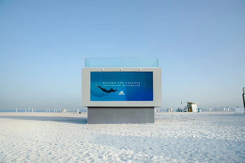 you can literally dive into adidas’ first-ever liquid billboard in dubai