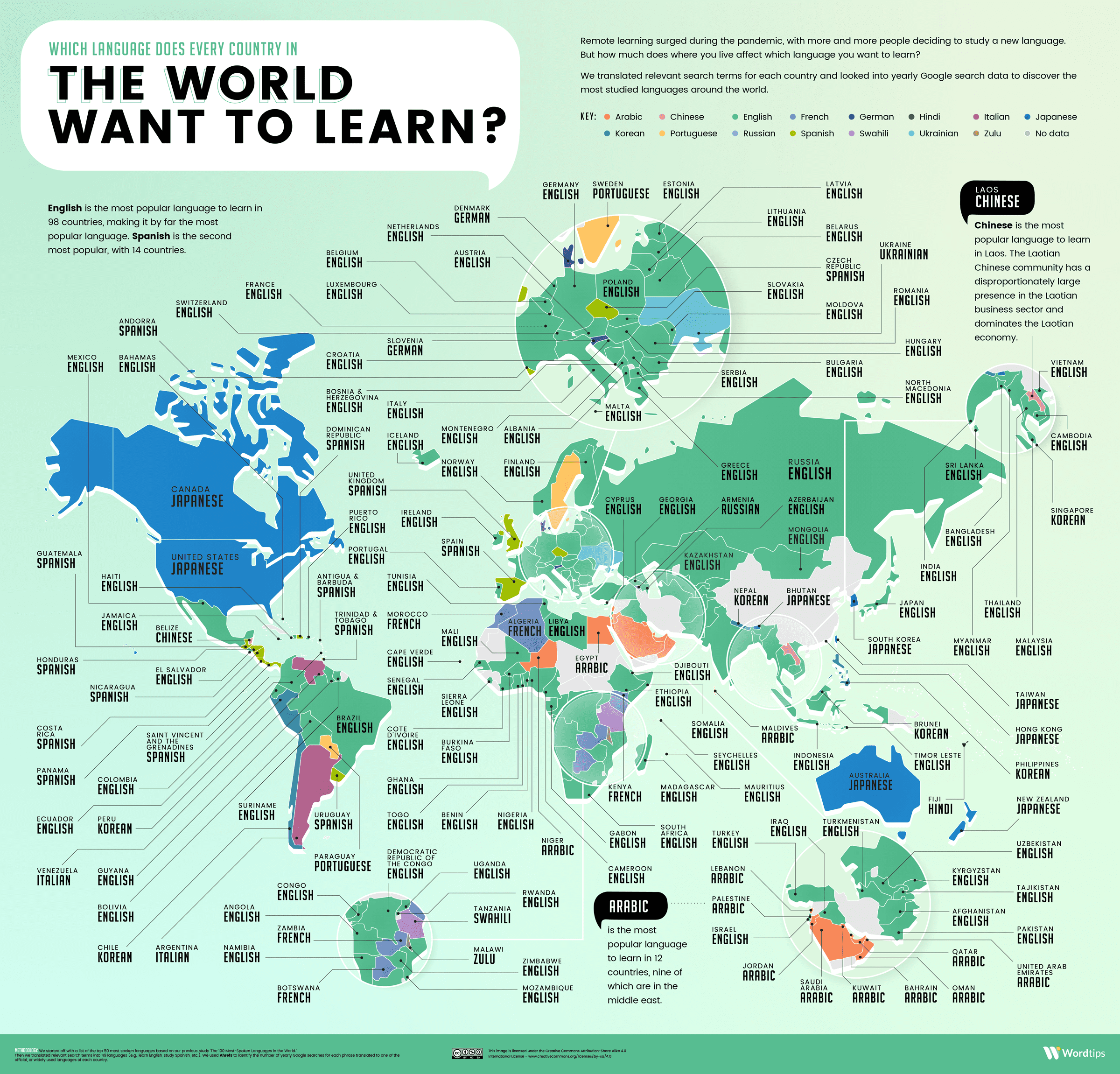 ์ธ๊ณ์ธ์ด ๊ฐ์ฅ ๋ฐฐ์ฐ๊ณ ์ถ์ด ํ๋ ์ธ๊ตญ์ด๋ฅผ ๊ตฌ๊ธ ํค์๋ ํ๋๋๋ก ๋น๊ตํด๋ณด๋...?! ์ธํฌ๊ทธ๋ํฝ by Word.tips...