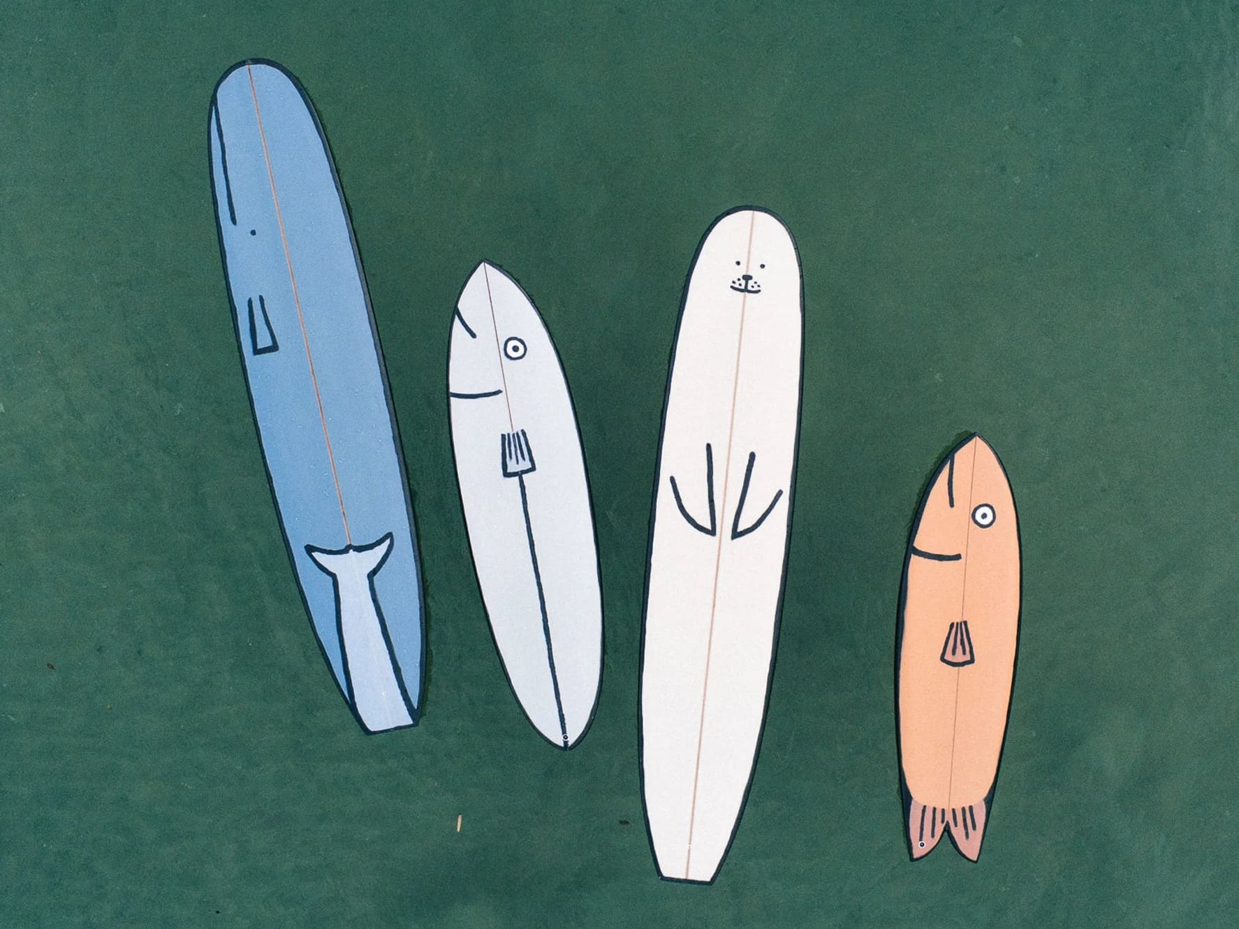 Jean Jullien paints surfboards to look like playful marine animals