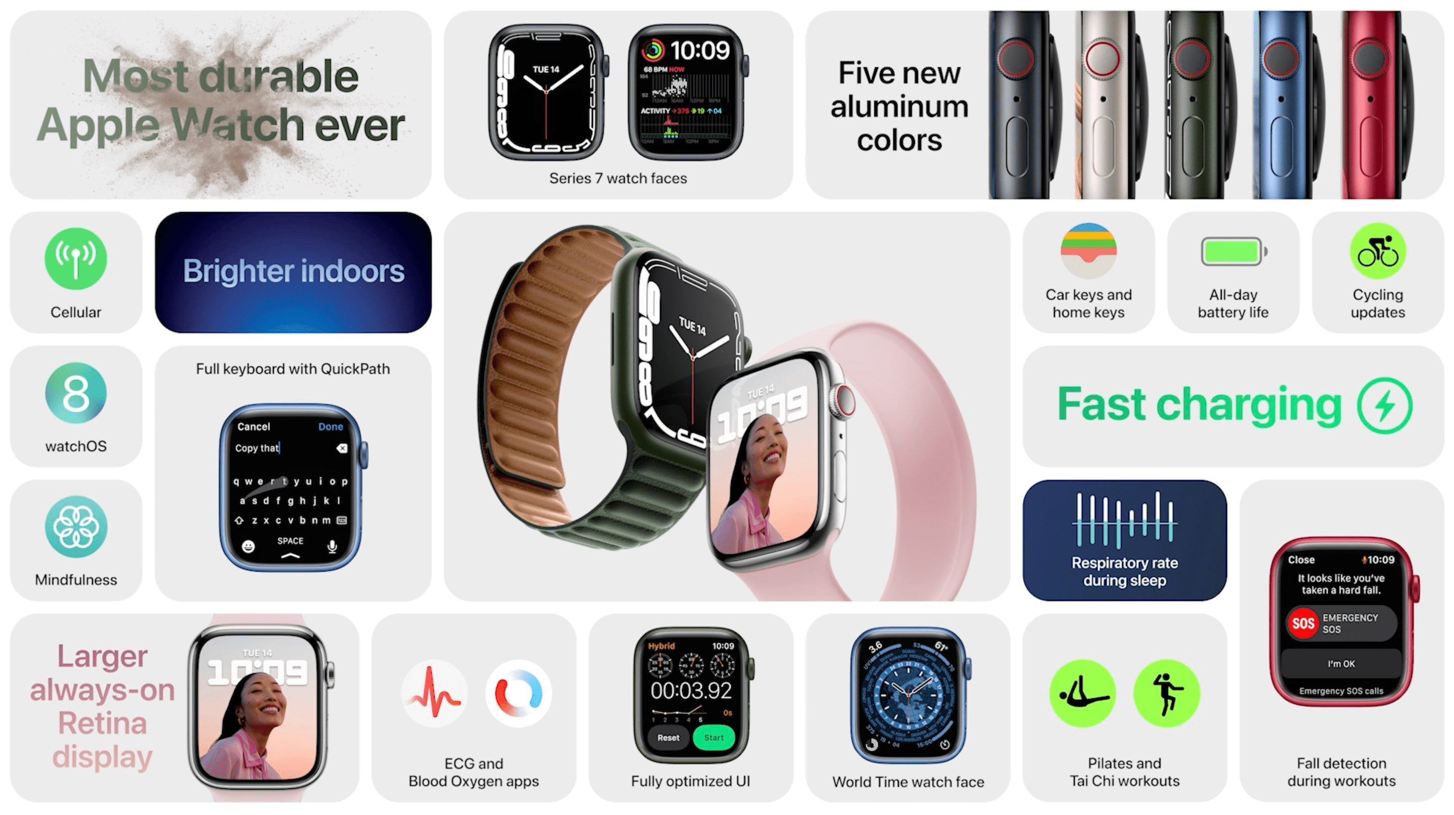 Apple์ ์ค๋ ์๋ก์ด ์์ํ์ํ Retina ๋์คํ๋ ์ด๋ก ํ์ฐํ ๋์ด์ง ํ๋ฉด ์์ญ๊ณผ ์์์ง ํ ๋๋ฆฌ์ Apple Watch Series 7์ ๊ณต๊ฐํ๋ค.