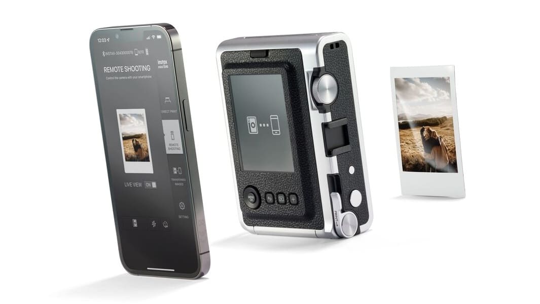 The instax mini Evo is an instant camera with a classic design. The camera features a combination of lens dial operation for light control and film dial operation for rich, nuanced expression, enabling 100 different ways to express yourself. With this hybr
