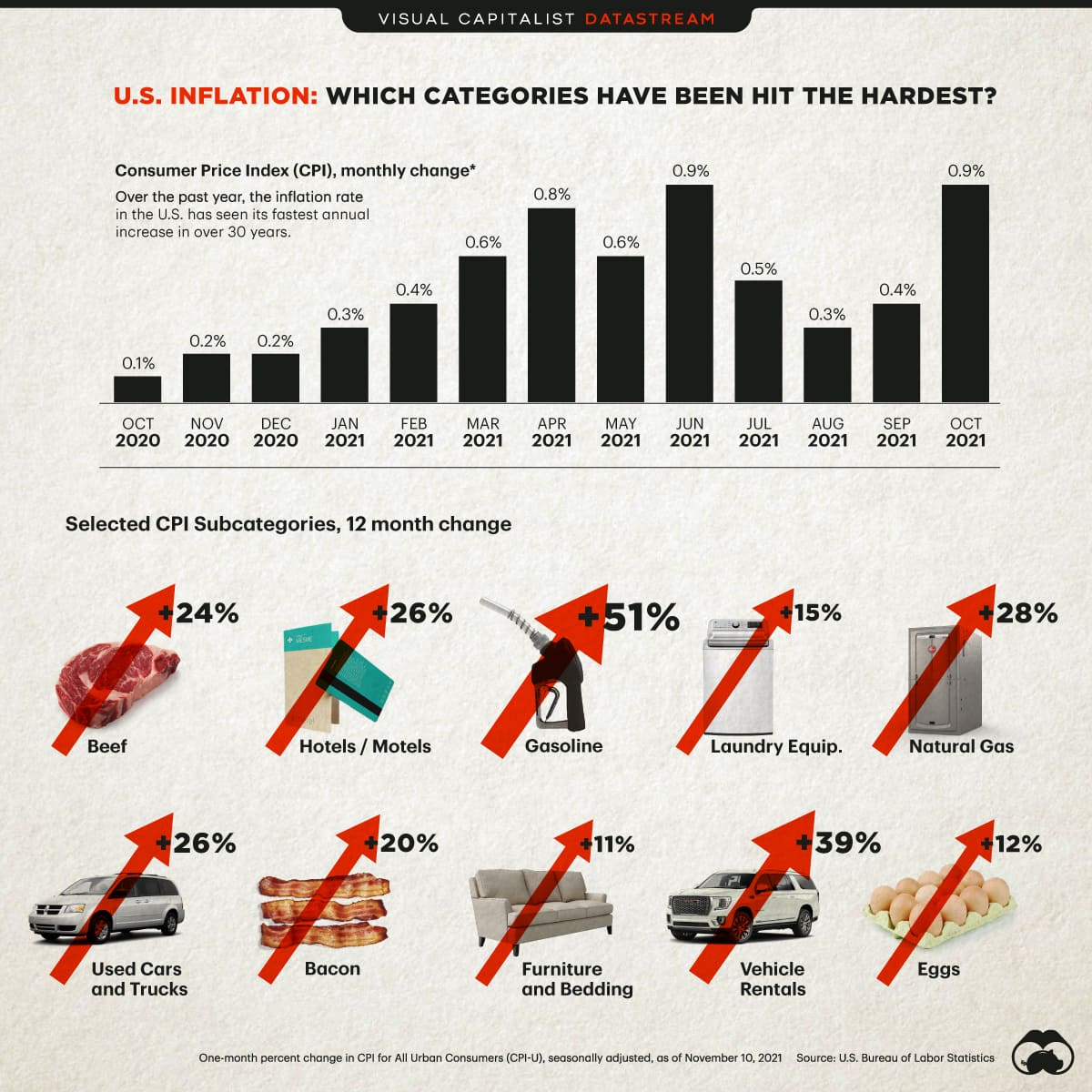 The U.S. inflation rate has seen its fastest annual increase in over 30 years. Which consumer spending categories have been hit the hardest?
