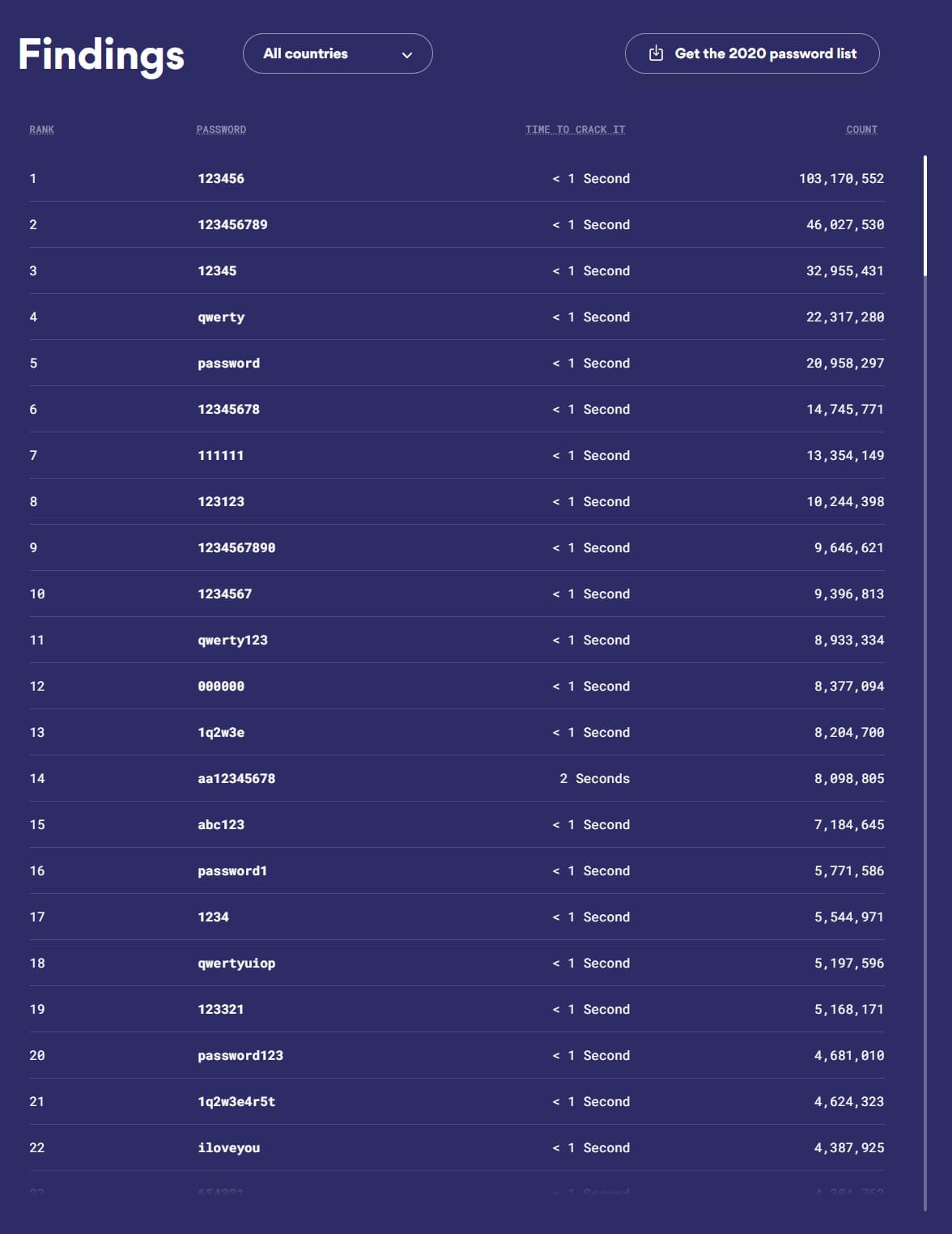 Many people use the same weak passwords year after year. Check our 2021 list of top 200 most common passwords used around the world.