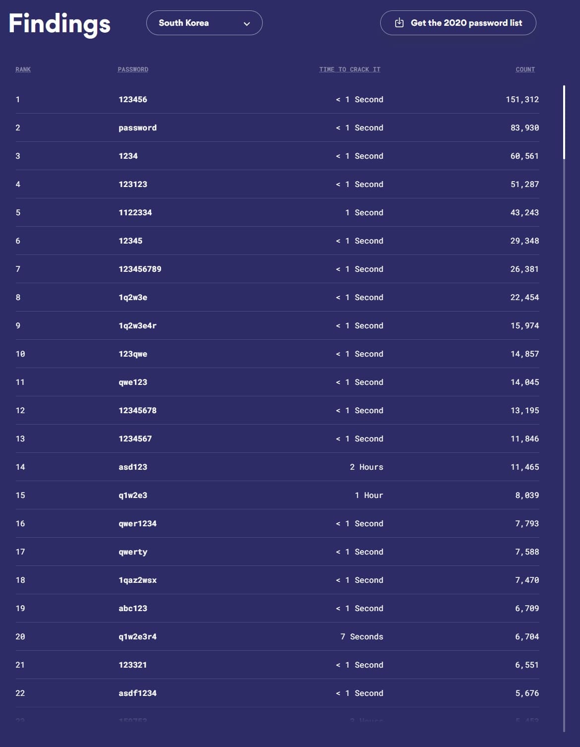 NordPassκ° κ³΅κ°ν κ°μ₯ μΌλ°μ μΈ λΉλ°λ²νΈ 200κ°μ§λ κ·Έλ κ² μ€μ€λ‘λ₯Ό μνμ λΉ νΈλ¦΄ μ μλ λ§λ μ λλ λΉλ°λ²νΈλ€μ μκ°νκ³ μμ΅λλ€. ν¬λνΉνλλ° 1μ΄λ μ 걸리λ λΉλ°λ²νΈ μλ λΉλ°λ²νΈλ€. νΉμ μ΄λ° κ±Έ μ°κ³ κ³μλ€λ©΄(κ·Έλ΄λ¦¬λ μκ² μ§λ§;;) μ΄μ λ°κΎΈμΈμ.@_@ 2λ¨κ³ μΈμ¦ μ κ·Ήμ μΌλ‘ μ¬μ©νμκ³ μ. μ°Έκ³ λ‘ μλμ λͺ¨λ λλΌμμ μΌλ°μ μΌλ‘ μ°μΈ νμ ν λΉλ²κ³Ό μ°λ¦¬λλΌμμ λ§μ΄ μ°μΈ νμ ν λΉλ²μ΄ μκ°λμ΄ μλλ°μ. NordPassμ κ°μλ©΄ 200κ°μ§ λͺ¨λ νμΈν μ μμΌλ νΉμ λ΄κ° μ°λ λΉλ°λ²νΈμ λ¬Έμ κ° μλμ§ λμ보μλ©΄ μ’κ² λ€μ. λͺ¨μͺΌλ‘ 2022λ