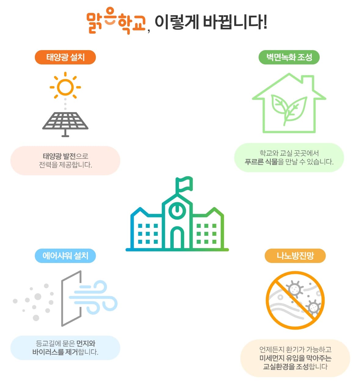 ์ด๋ฒ์ ์์ธ๊ณผ ๊ฒฝ๊ธฐ, ์ธ์ฒ ์ง์ญ์ ์ด๋ฑํ๊ต๋ฅผ ๋์์ผ๋ก ํ์๊ด ๋ฐ์ ์ค๋น๋ฅผ ์ง์ํด ๋ฏธ์ธ๋จผ์ง ๋ฐ์ ์์ด ๋ง๋๋ ๊นจ๋ํ ์ ๊ธฐ๋ฅผ ์ฌ์ฉํ ์ ์๊ฒ ํ๊ณ , ์์ด๋ค์ ๊ฑด๊ฐ์ ์ํํ๋ ๋ฏธ์ธ๋จผ์ง๋ฅผ ๋ง๊ธฐ ์ํด ํ๊ต ์ถ์