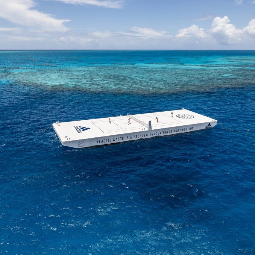 Adidas and Parley for the Oceans have created a recycled-plastic tennis court that floats within Australia's Great Barrier Reef marine park.