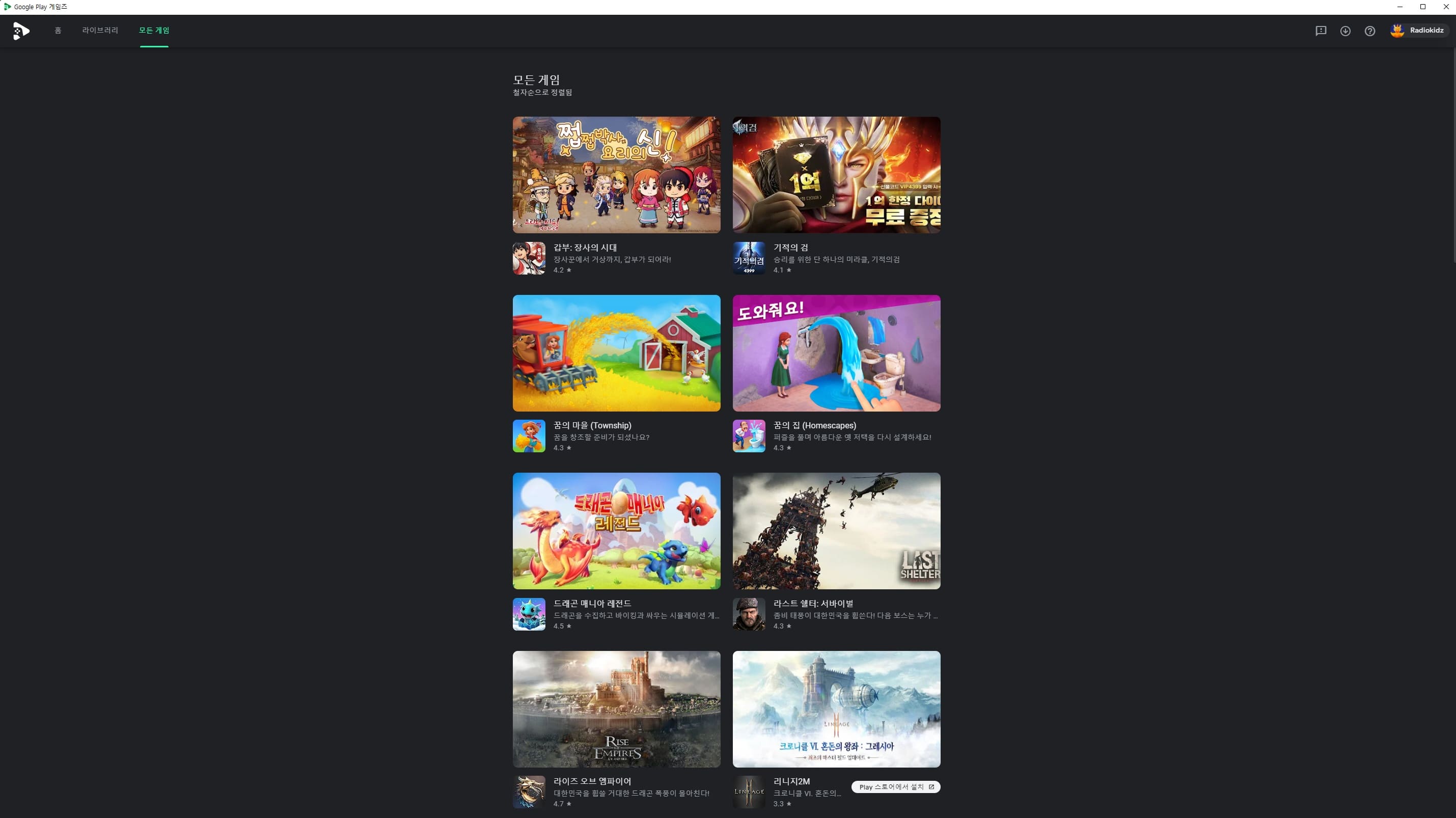 ๊ตฌ๊ธ ํ๋ ์ด ๊ฒ์์ฆ ์ค์น๊ฐ ๋๋๋ฉด ๊ตฌ๊ธ ๊ณ์ ์ผ๋ก ๋ก๊ทธ์ธ์ ํ๋ฉด ๊ธฐ๋ณธ์ ์ธ ์ค๋น๊ฐ ๋๋๋๋ฐ์. ์ค์นํ ์ ์๋ ๊ฒ์ ๋ชฉ๋ก์ด ํ์๋๋๋ฐ ์์ง์ ๋ฒ ํ ์ด๋ฐ์ด๋ผ์ ๊ทธ๋ฐ์ง ์ค์นํด์ ์ฆ๊ธธ ์ ์๋ ๊ฒ์์๊ฐ ์ ๋๊ตฐ์. ์์คํํธ 9: ๋ ์ ๋, ์๋จธ๋์ฆ ์: ์ฒ๊ณต์ ์๋ ๋, ์ฟ ํค๋ฐ: ์ค๋ธ ๋ธ๋ ์ดํฌ, ์บ๋ฆฌ๋น์์ ํด์ : ์ ์์ ๋ฌผ๊ฒฐ, ํธ๋ฆญ์คํฐM, ๋ฆฌ๋์งW, ๋ธ๋ ์ด๋&์์ธ2 ๋ฑ์ด ๋์ ๋๋๋ฐ ๋ชจ๋ ์ ๊ฐ ํ์์ ํ๋ ๊ฒ์์ด ์๋๋ผ์...