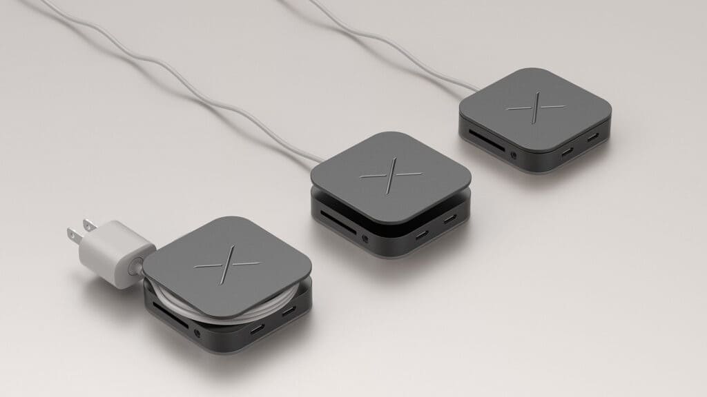 The wireless charger features a wide variety of ports including USB-C, USB-A, thunderbolt, an SD card slot and a headphone jack.