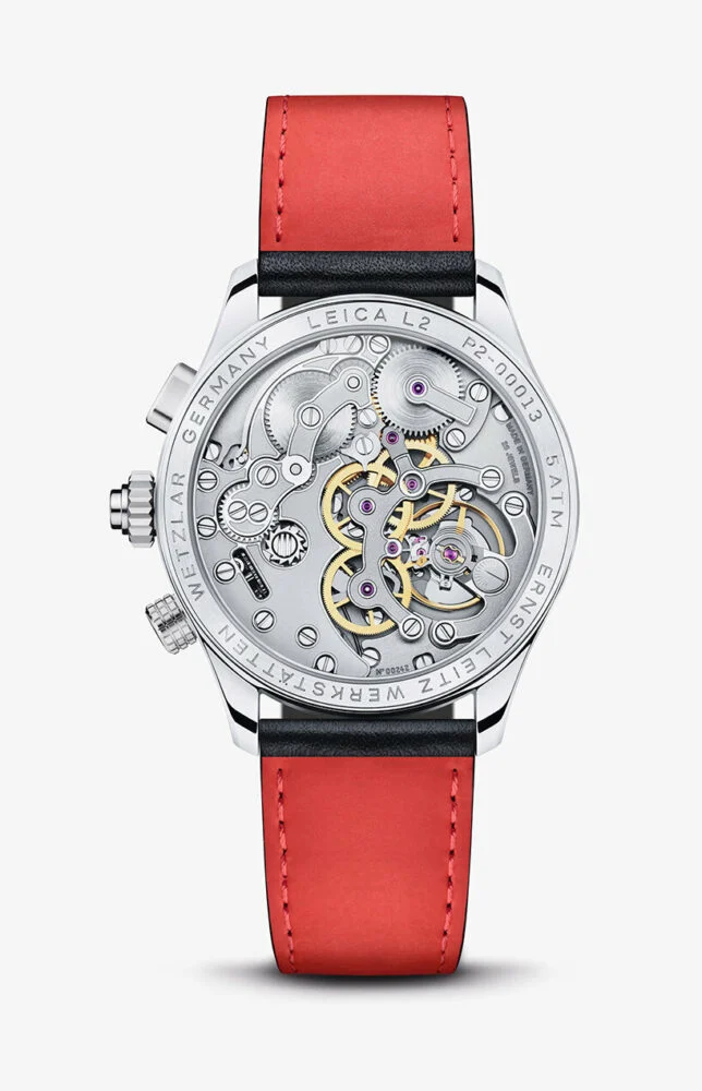 Mechanically, both models are manually-wound watches displaying hours, minutes and seconds, a date window, status and power reserve. The Leica L1 and Leica L2 are fitted with a scratch-proof domed sapphire crystal, a transparent case back, and are both wat