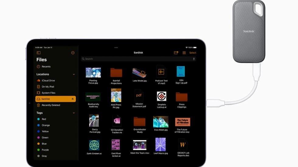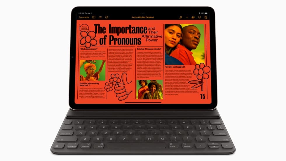 μ λ©΄ νλ©΄ λμμΈ, 27.5cm λμ€νλ μ΄, M1 μΉ©, μΌν° μ€ν μ΄μ§λ₯Ό κ°μΆκ³ Apple Pencil λ° Magic Keyboardμ νΈνλλ μλ‘μ΄ iPad Air. 5κ°μ§ μμμμ μ νν μ μμ΅λλ€.