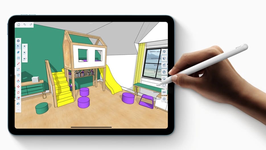 μ λ©΄ νλ©΄ λμμΈ, 27.5cm λμ€νλ μ΄, M1 μΉ©, μΌν° μ€ν μ΄μ§λ₯Ό κ°μΆκ³ Apple Pencil λ° Magic Keyboardμ νΈνλλ μλ‘μ΄ iPad Air. 5κ°μ§ μμμμ μ νν μ μμ΅λλ€.