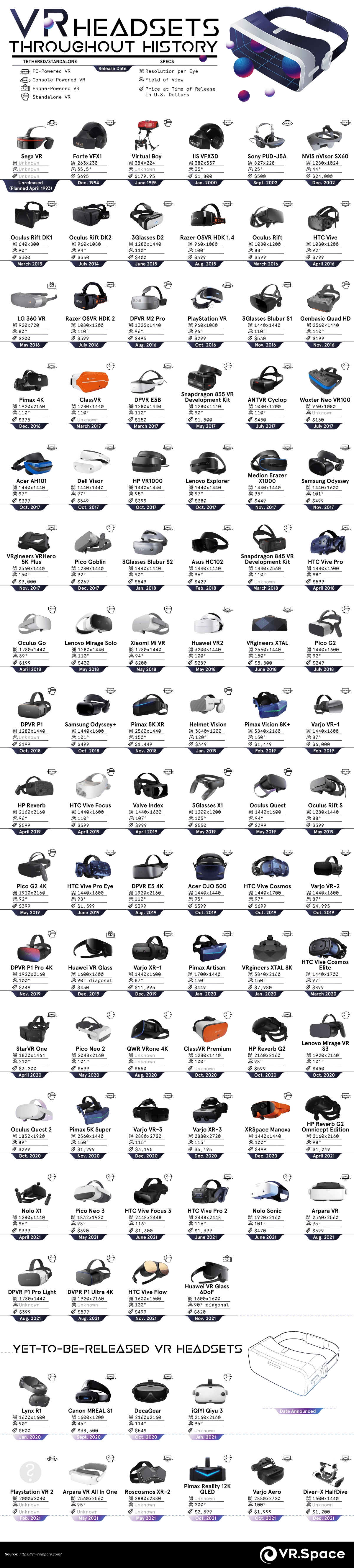 μλ¬΄νΌ κ·Έλ κ² μμ§ μ¨μ ν μ€μ§ μμ κ°μ μΈκ³μ λ©νλ²μ€μ λ€μ΄κ°κΈ° μν΄μ νμν κ² μ€ νλκ° VR ν€λμ μΈλ°μ. λμμ κ°μ μΈκ³λ₯Ό ν¬μ¬ν΄μ£Όλ VR ν€λμ μ μμ¬κ° κΆκΈνμ ¨λ€λ©΄ VR.Spaceκ° μ 리ν μ΄ μΈν¬κ·Έλν½μ μ°Έκ³ ν΄ λ³΄μΈμ. μ΄ μλ£μλ 1990λ λλΆν° 2021λ κΉμ§ λ±μ₯ν λ€μν VR ν€λμ μ΄ μκ°λμ΄ μμ΅λλ€. μλλ₯Ό νλ―Έν(?) VR ν€λμ μ μ΄λ¦μ λμ§ ν΄μλμ μμΌκ°μ μ΄λ λμ§. λ κ°κ²©μ μΌλ§μλμ§ λ±μ΄ μ 리λμ΄ μμ΄μ κ·Έκ° μΌλ§λ λ€μν VR ν€λμ μ΄ λμλμ§ λμλ³΄κ² λλλ°μ. μ₯λ μ½λΌλ¦¬ λ§μ§κΈ° κ°μ΄ μ κ°κ°μΌλ‘ ν΄μλλ λ©νλ²μ€κ° μ΄λ€ λͺ¨μ΅μΌμ§ λͺ¨λ₯΄λ κ·Έλ μΈ VR ν€λμ κ°μ μ₯λΉμ λͺ¨μ΅μ μ΄λ¨μ§ κΆκΈν΄μ§λλ° μ§μ§ λ©νλ²μ€λ‘ μ°λ¦΄ μΈλν μ λκ° λλ €λ©΄ λ μΈλ§ν΄μ§κ² μ£ ?^^
