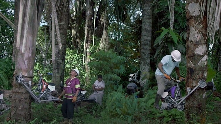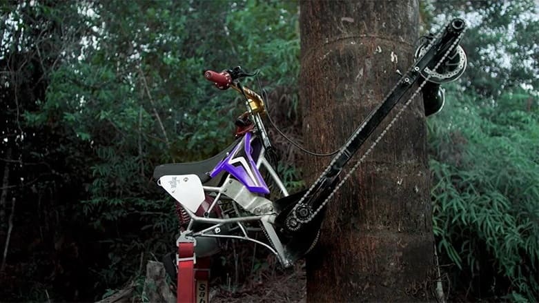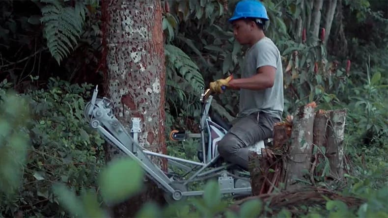 this vertical bike powered by honda climbs trees to prevent deforestation