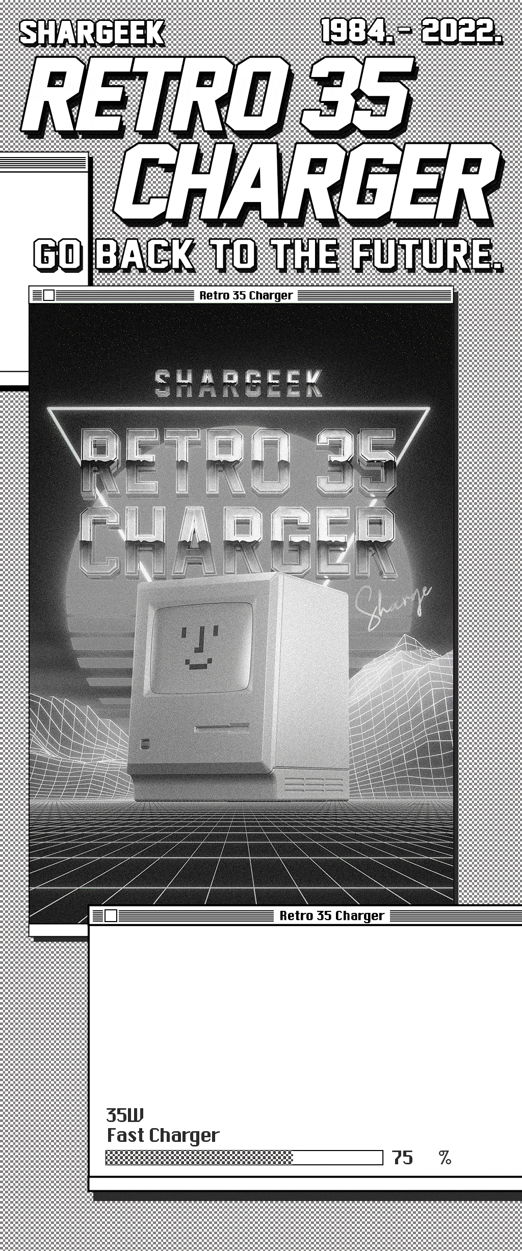 A homage to the classics |MAX 35W output| Charge notebook at high speed | Check out 'SHARGEEK Retro 35 GaN Charger' on Indiegogo.