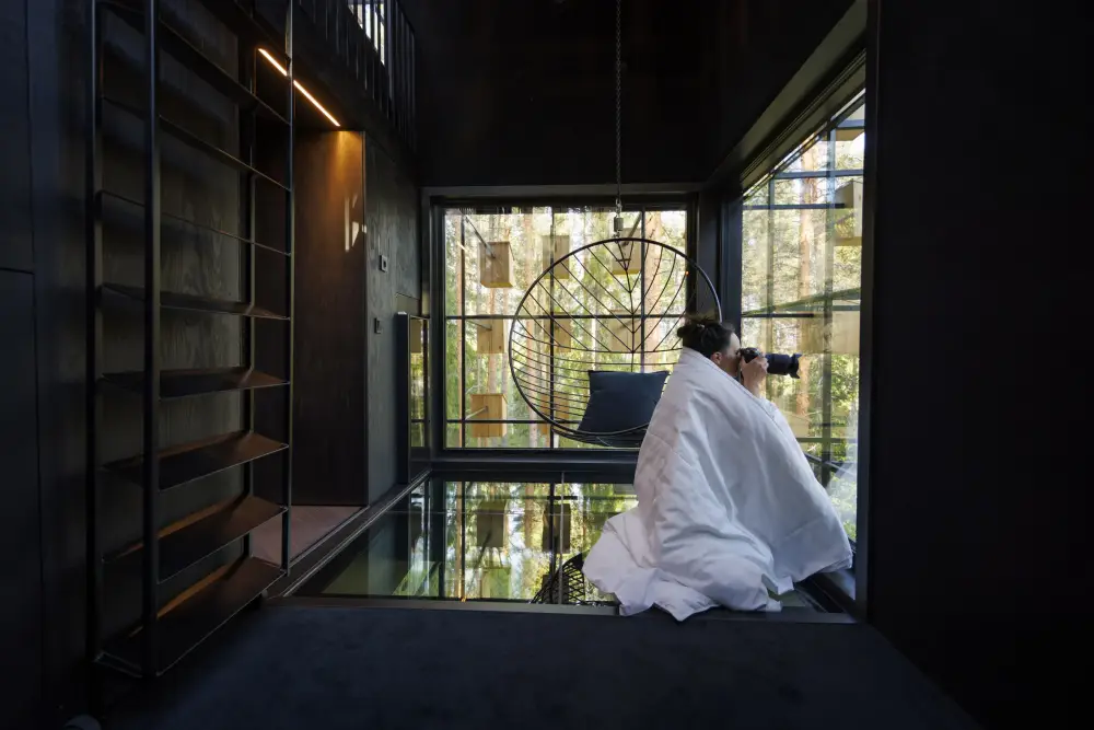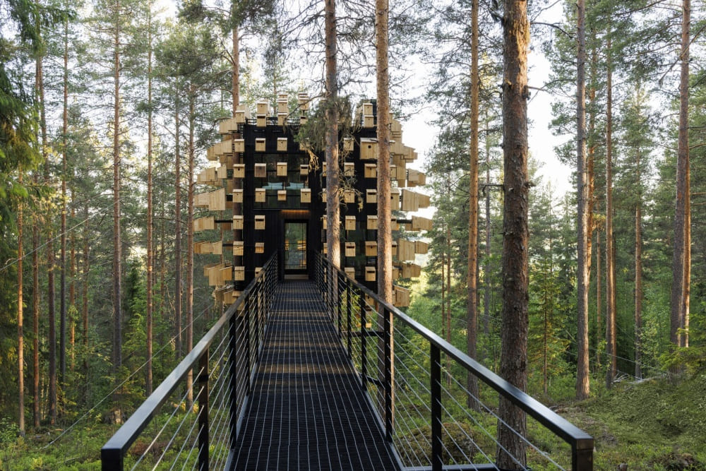(Treehotel)์ ์์ฐ ์์ ๊น์ด ๋ค์ด๊ฐ ์์ฐ์ ๊ด์ฐฐํ ์ ์๊ฒ ๋์์ธ๋์ด ์๋๋ฐ์.