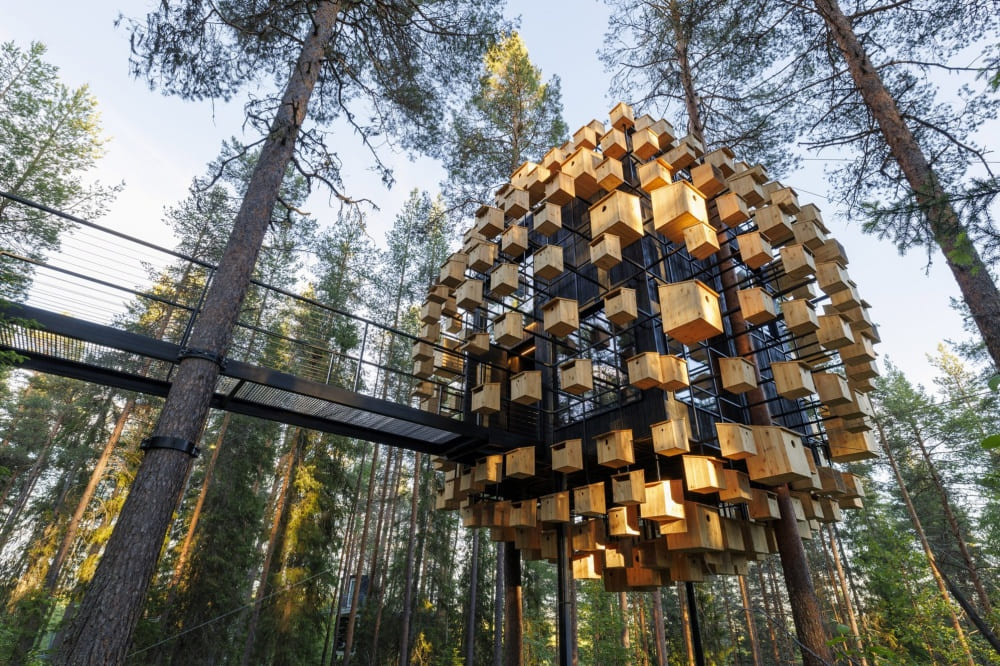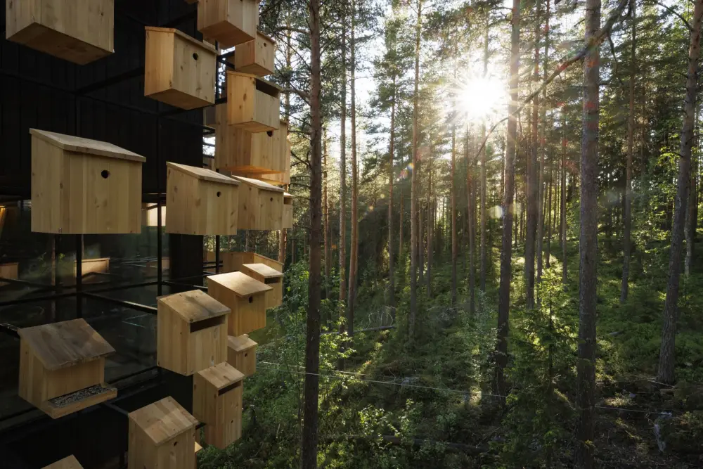 BIG wraps Lapland hotel room in 350 birdhouses