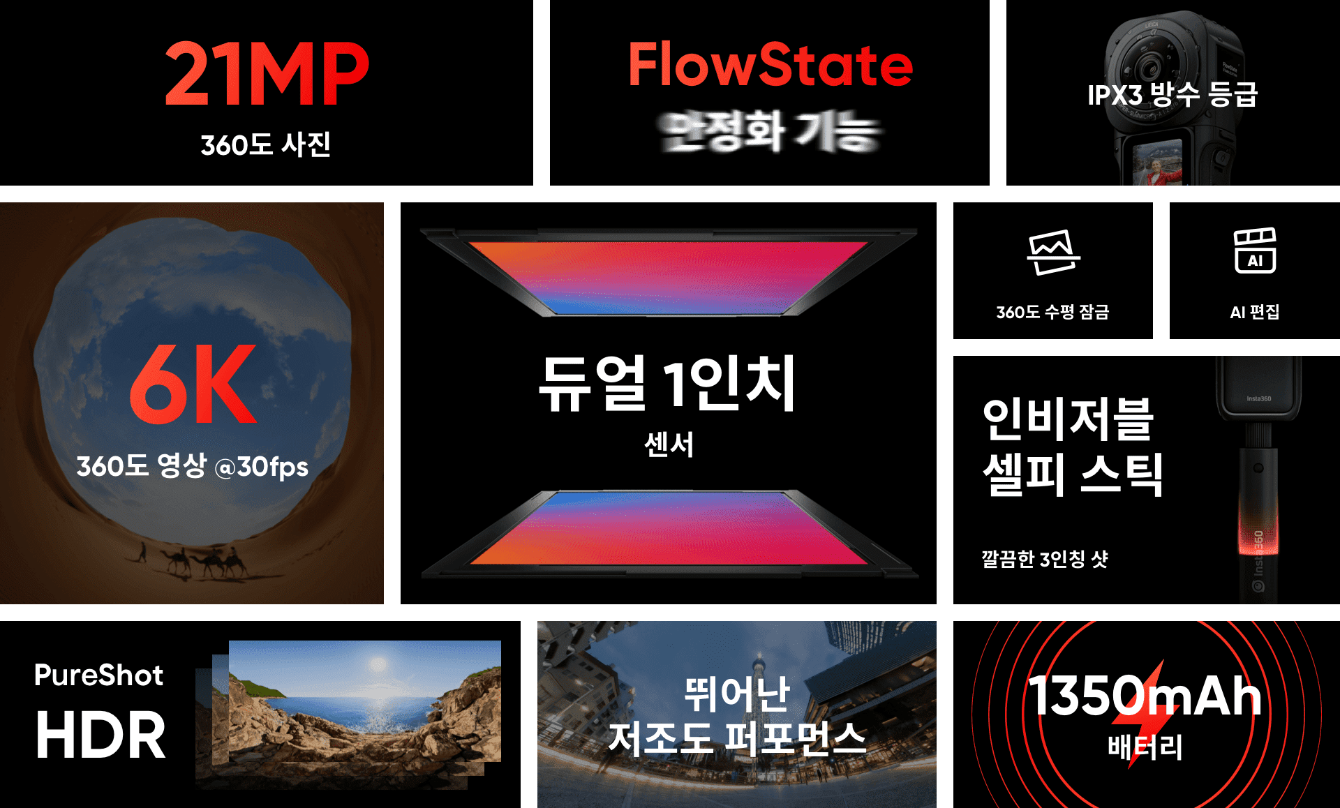 360 camera co-engineered with Leica, with dual 1-inch sensors for unparalleled image quality. Shoot 6K video with FlowState stabilization & 21MP photos with AI imaging.