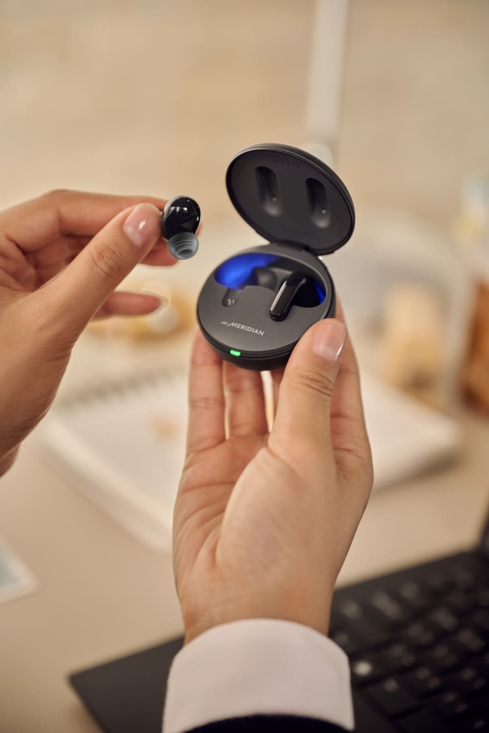 LGμ μκ° νλΆν μ 체μν₯κ³Ό κ°νλ λ Έμ΄μ¦ μΊμ¬λ§ κΈ°λ₯μΌλ‘ μ°¨λ³νλ λͺ°μ κ°μ μ 곡νλ ν리미μ 무μ μ΄μ΄ν° 'LG ν€ ν리(TONE Free)' μ μ νμ μ 보μΈλ€.