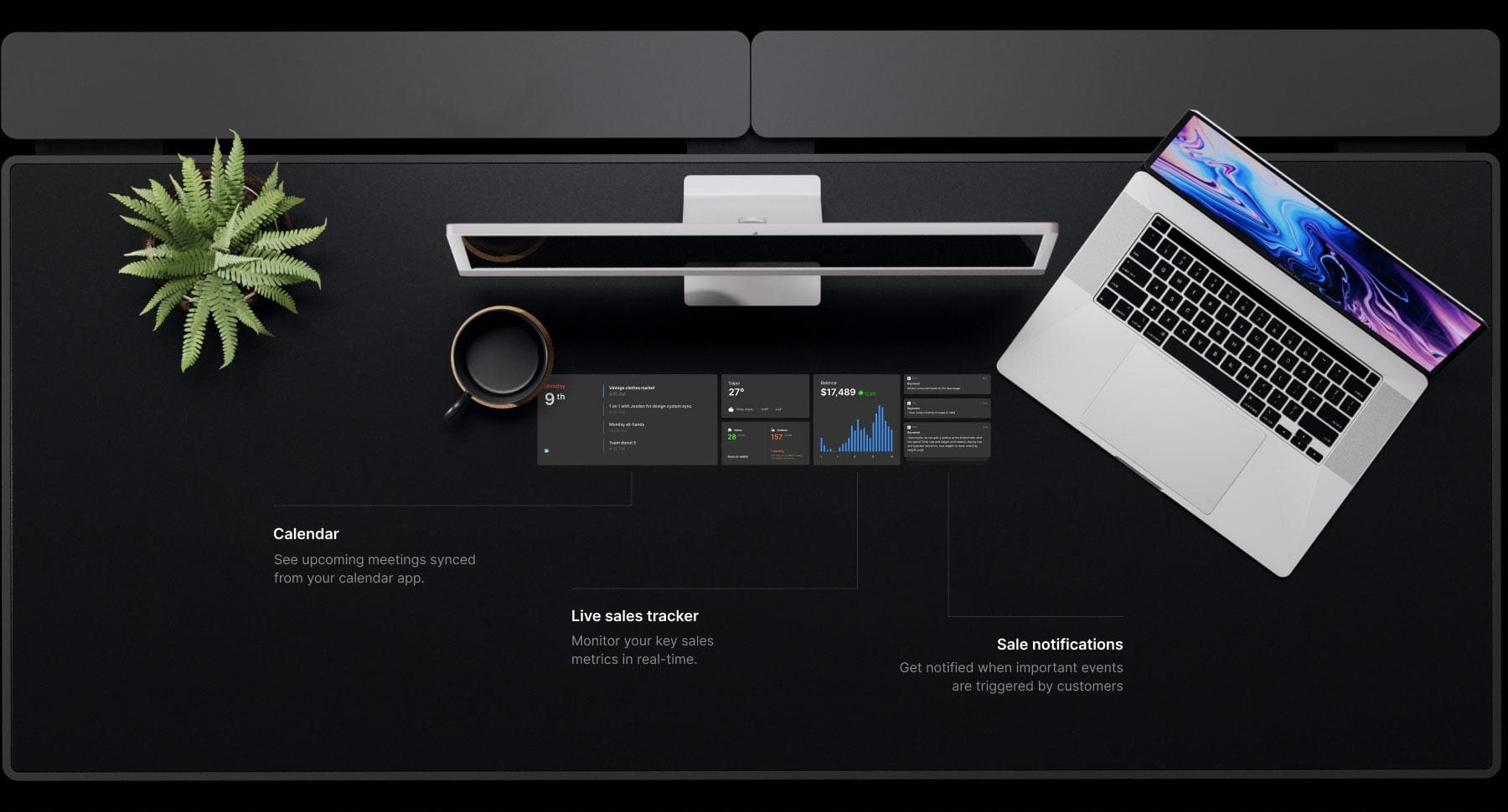 μ΄λ²μ μκ°ν 건 μ€ν λ© λ°μ€ν¬ μμ λ³λμ λμ€νλ μ΄λ₯Ό μΆκ°νκ³ μ»΄ν¨ν°μ μ°κ²°ν μ μλλ‘ ν΄μ κΈ°μ‘΄μ λͺ¨λν° μΈμ μΈμ»¨λ λμ€νλ μ΄μ²λΌ νμ©ν μ μκ² νλ 루미λ(LUMINA)μ 루미λ λ°μ€ν¬(Lumina Desk)μ