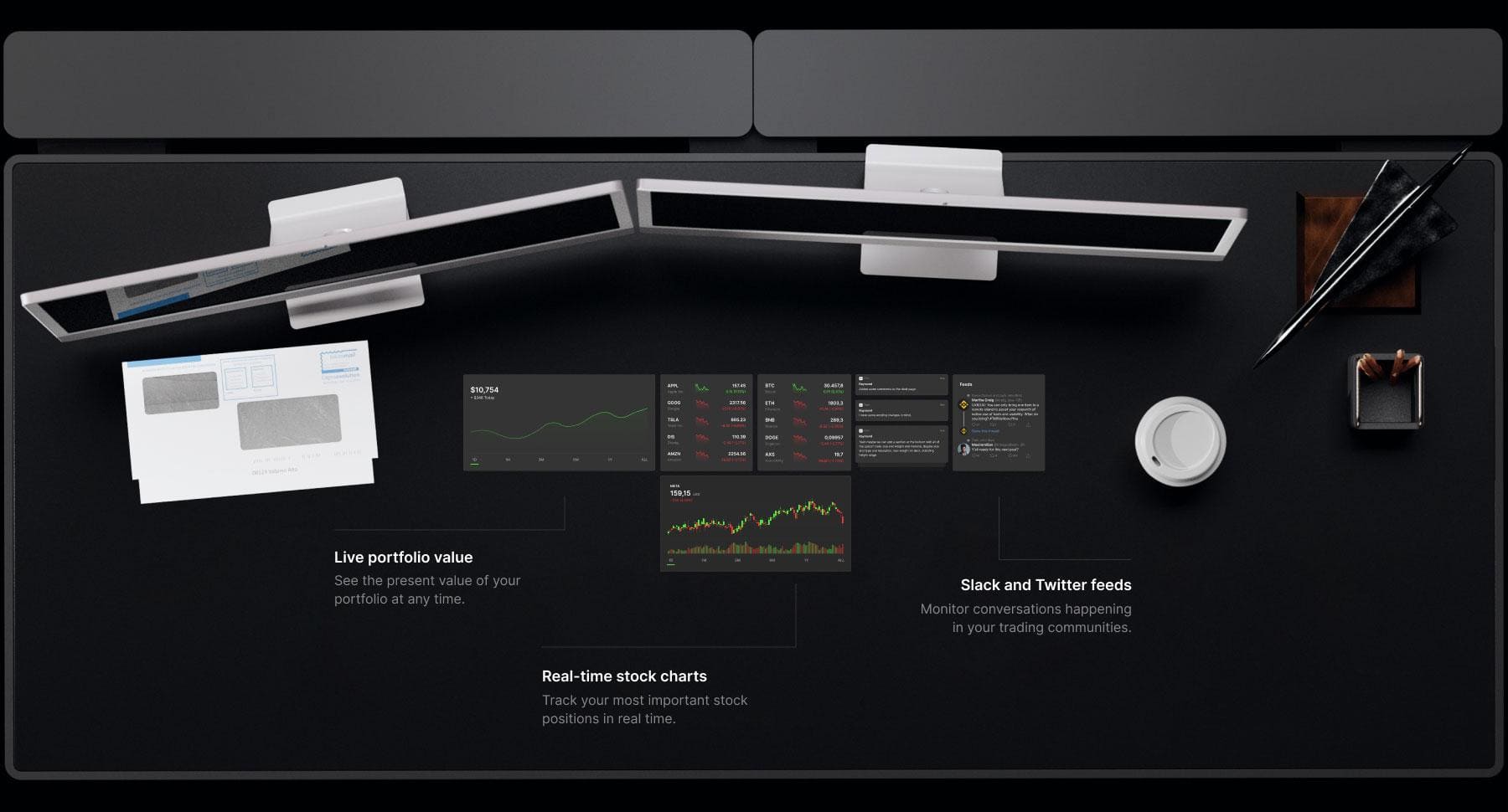 μ΄λ²μ μκ°ν 건 μ€ν λ© λ°μ€ν¬ μμ λ³λμ λμ€νλ μ΄λ₯Ό μΆκ°νκ³ μ»΄ν¨ν°μ μ°κ²°ν μ μλλ‘ ν΄μ κΈ°μ‘΄μ λͺ¨λν° μΈμ μΈμ»¨λ λμ€νλ μ΄μ²λΌ νμ©ν μ μκ² νλ 루미λ(LUMINA)μ 루미λ λ°μ€ν¬(Lumina Desk)μ