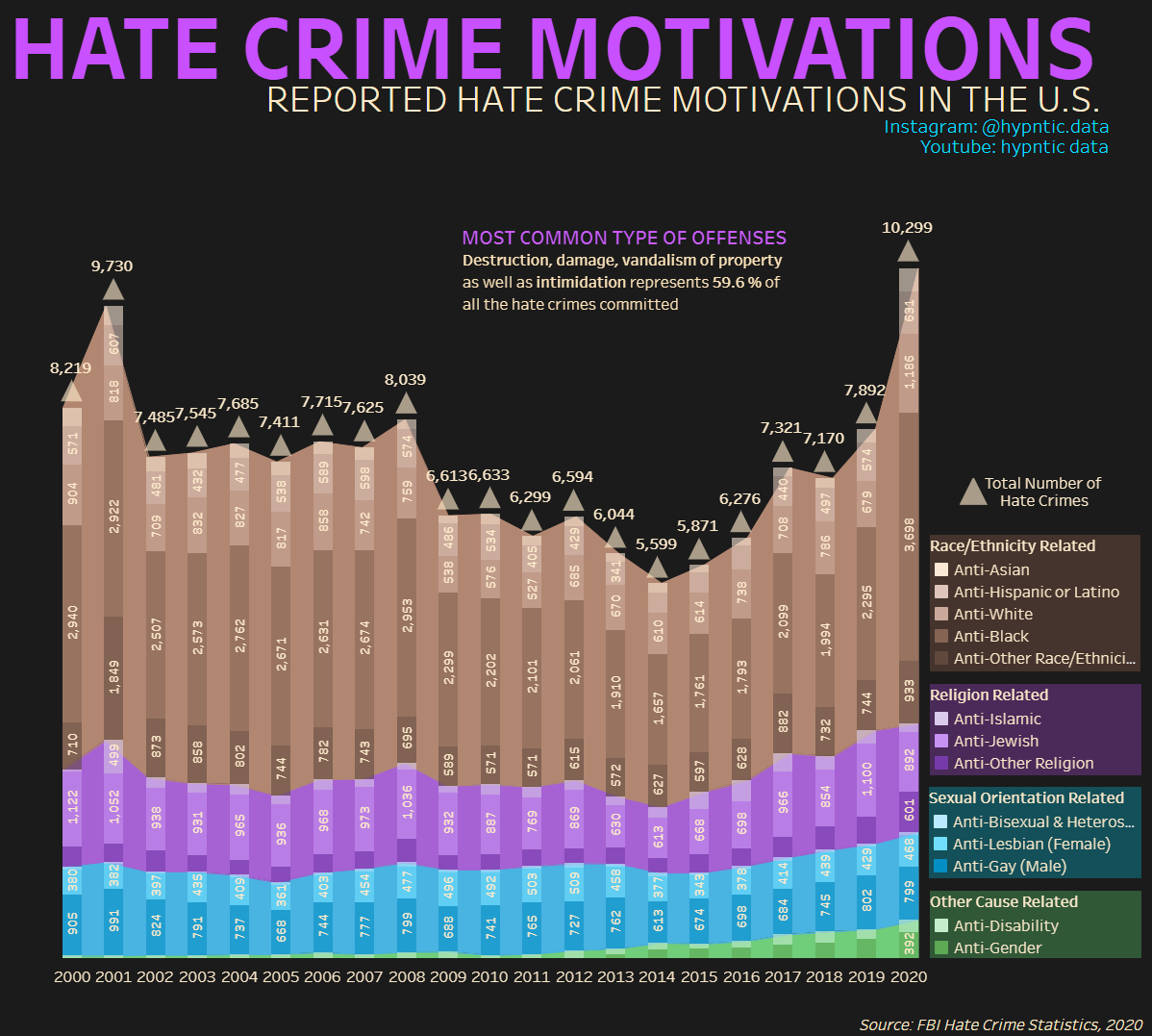 Hate crimes across the U.S. have been on the rise since 2014. Here's a look at the most common types of offenses over the years.