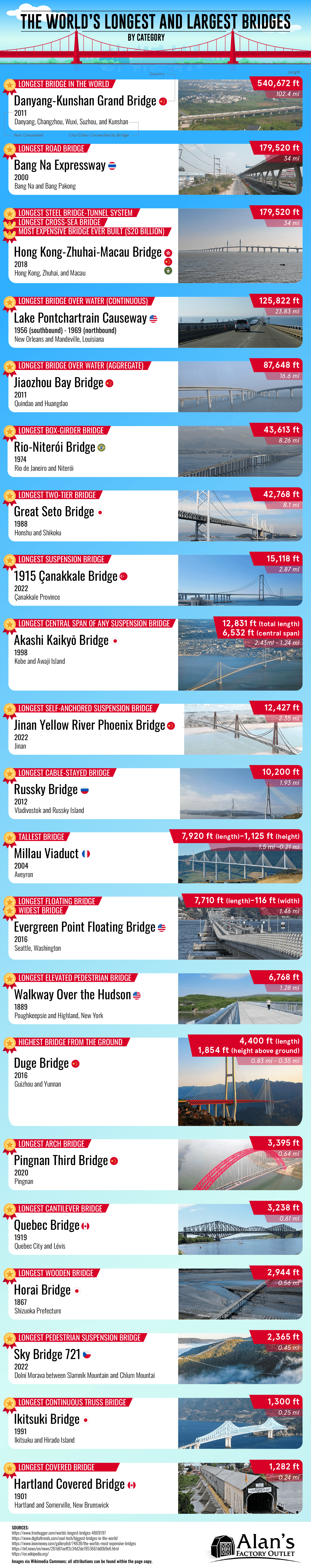 The World’s Longest and Largest Bridges by Category