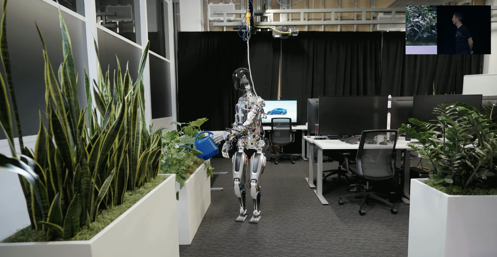 ํ ์ฌ๋ผ ๋ด ์ตํฐ๋จธ์ค๋ ๊ณต์ฅ ๋ฑ์์ ์ฌ๋์ ๋์ฒดํด ์ผํ ์ ์๋๋ก ๋์์ธ๋ ๋ก๋ด์ ๋๋ค. ์ฌ๋์ ๋์ฒดํ๋๋ฐ ์ด์ ์ ๋ง์ถ ๋งํผ ์ฌ๋๊ณผ ๋น์ทํ๊ฒ ์๊ธด ์ธํ์ผ๋ก ์ด์กฑ ๋ณดํ์ผ๋ก ๊ฑท๊ณ ๋ก๋ด ํ๊ณผ ์์ผ๋ก ์ง์ ์ฎ๊ธฐ๊ฑฐ๋ ์ฌ๋ฌผ์ ์ ์ดํ ์ ์๋๋ก ๋ง๋ค์ด์ก์ฃ . ์ด๋ฒ ํ์ฌ์์๋ ๋ฌด๋๋ก ๊ฑธ์ด ๋์ ์์ ํ๋๋ ์ ๋์ ์ก์ ๋ง ๋ณด์ฌ์คฌ์ง๋ง, ํ ์ฌ๋ผ๋ AI๋ก ๋ก๋ด์ ์์ง์์ ๋ณด์ํ๊ณ ๋ฐ์ ์ํค๋ฉฐ ์งํ๋ ๋ก๋ด์ ๋ง๋ค ๊ฑฐ๋ ํฌ๋ถ๋ฅผ ๋ฐํ์ต๋๋ค.
