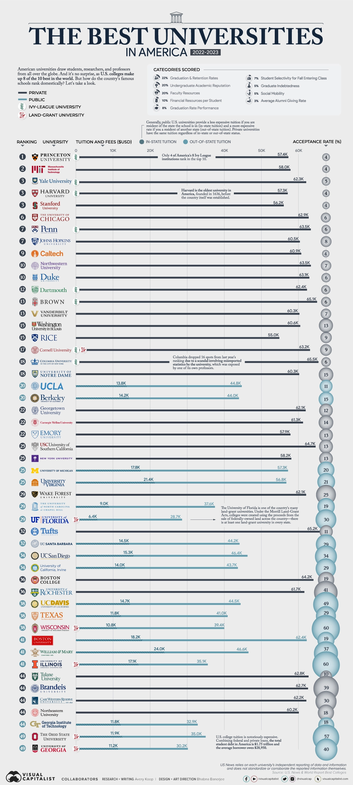 U.S. News & World Reportμ μλ£λ₯Ό λ°νμΌλ‘ VISUAL CAPITALISTκ° μ 리ν μ΄ μΈν¬κ·Έλν½μ λ―Έκ΅μ μμ 50λ λνκ΅λ₯Ό μκ°νκ³ μμ΅λλ€. μ‘Έμ