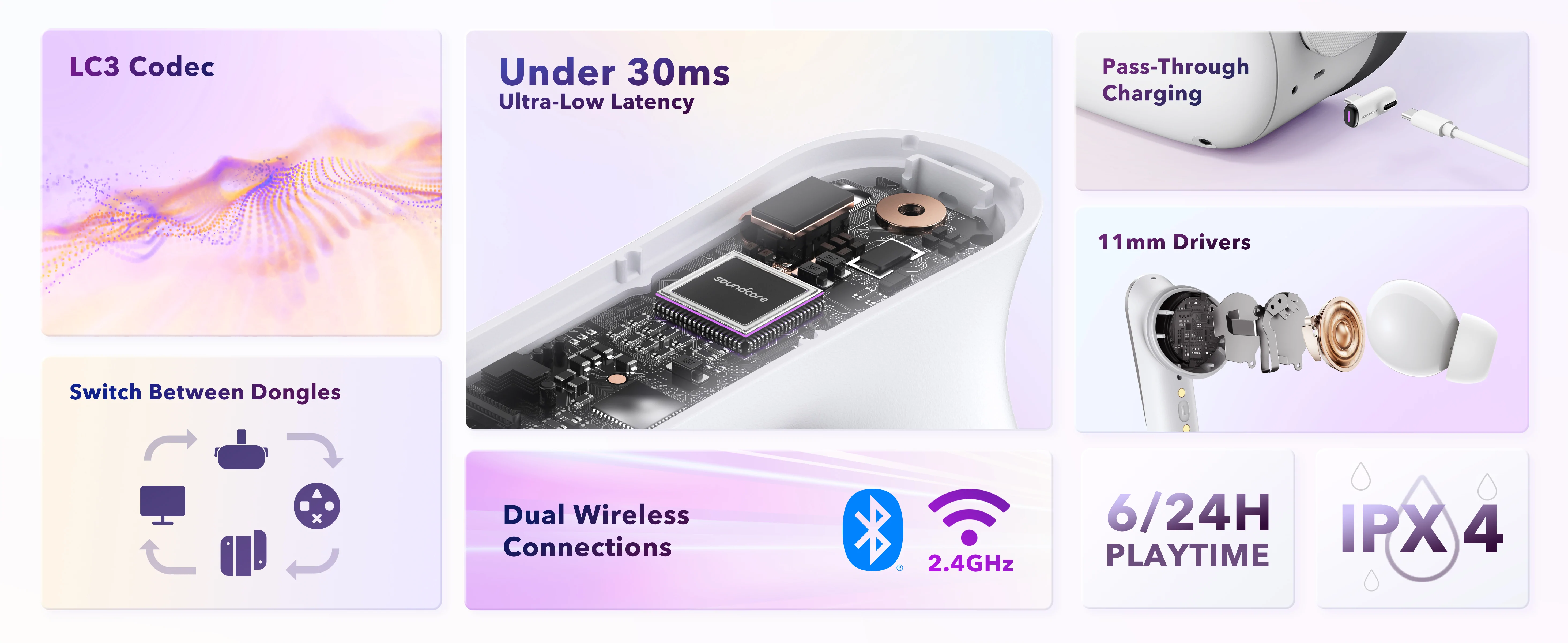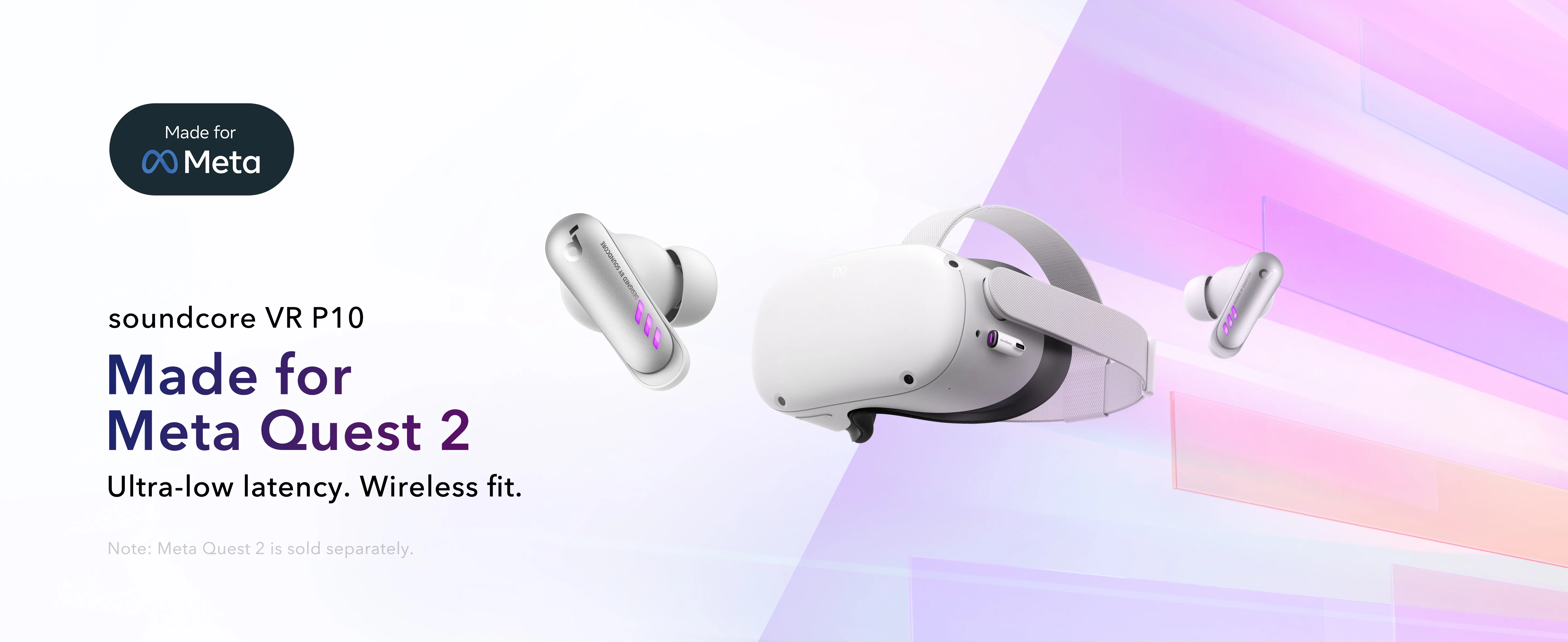 soundcore VR P10 is the first True Wireless Earbuds authorized by Meta to work with Meta Quest. With 30ms ultra-low latency, dual connection, and thumping sound.