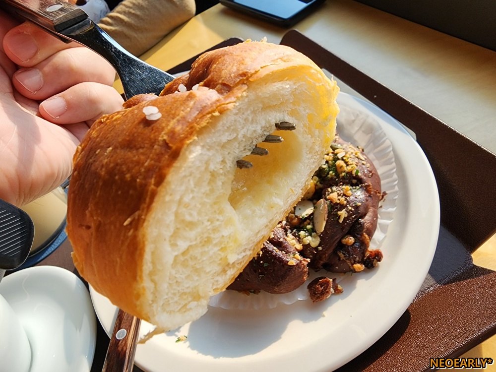 ํ ์๋ฃ์ ๋นต. ์๊ธ๋นต์ ์ด๋ฆ์ฒ๋ผ ์๊ธ์ ์งญ์กฐ๋ฆํจ๊ณผ ๋ฒํฐ์ ๊ณ ์ํ ๋ง์ ์๋์ง๊ฐ ์ข์๊ณ , ์ด์ฝ ํธ์์คํธ๋ ์ด์ฝ๋นต ๋ฒ ์ด์ค์ ์๋ชฌ๋, ํธ๋, ํธ๋ฐ์จ ๋ฑ ๋ค์ํ ๊ฒฌ๊ณผ๋ฅ๊ฐ ๋ํด์ ธ ๋ฌ์ฝคํ๋ฉด์๋ ๊ณ ์ํ๋๊ตฐ์. ์๋ฃ๊ฐ ๋ฌ์ฝคํ๊ธด ํ์ง๋ง, ํจ๊ป ๋จน์ด๋ ๋์์ง ์์์ต๋๋ค. ์๋ฃ์ ํจ๊ป ์๊ฐ์ด ํ๋ฅด๊ณ ํด๊ฐ ๋์ฟ๋์ฟ ์ ธ๊ฐ๋ฉฐ ํธ์์๋ ์กฐ๊ธ์ฉ ์ด์ค๋ฆ์ด ์ฐพ์์ฌ ๋์ฏค ํธ์์๊ธฐ๋ฅผ ๋์ ๊ธฐํฅํธ์ ๋๋ ๊ธธ์ ๋์ ์ง๊น์ง ๊ฑธ์ด์๋๋ฐ์.