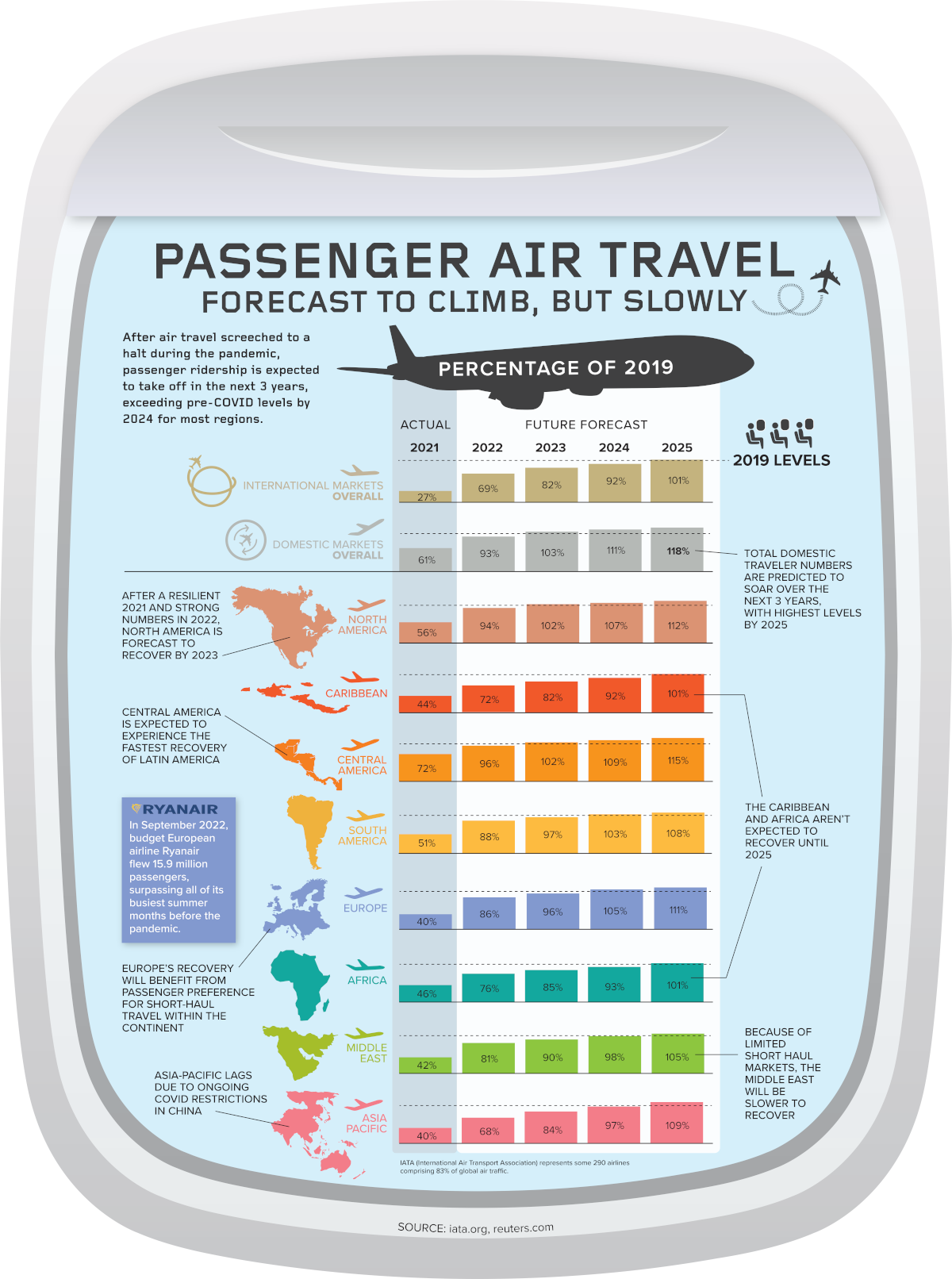 ๊ตญ์ ํญ๊ณต์ด์กํํ(IATA)์ ์์ธก ์๋ฃ๋ฅผ VISUAL CAPITALIST๊ฐ ์ ๋ฆฌํ ์ธํฌ๊ทธ๋ํฝ์ ๊ตญ๋ด์ ์ด๋ ๊ตญ์ ์ ์ด๋, ๋ ๊ตญ์ ์ ์ด๋ผ๋ฉด ์ง์ญ๋ณ๋ก ํญ๊ณตํธ์ด ์ธ์ ์ด์ ์ฒ๋ผ ํ๋ณต๋ ์ง๋ฅผ ์๊ฐํ๊ณ ์์ต๋๋ค. ์ผ๋ง๋ ์ฌ๊ฐํ๋์ง 2021๋