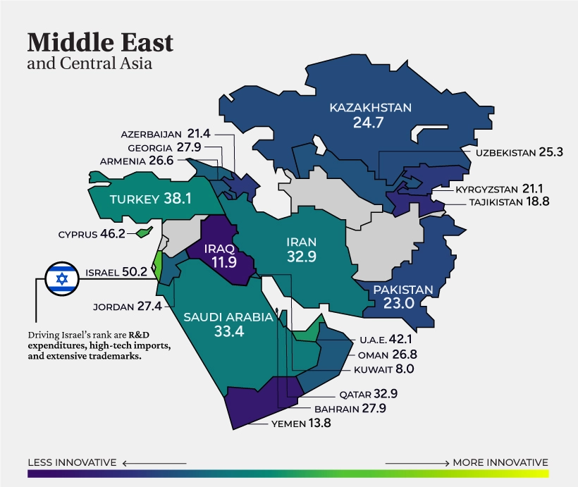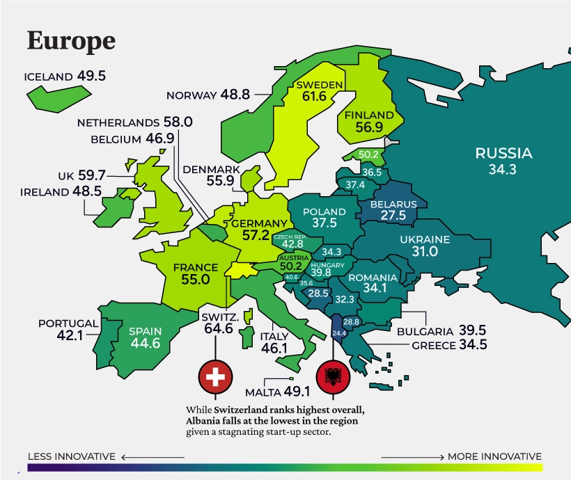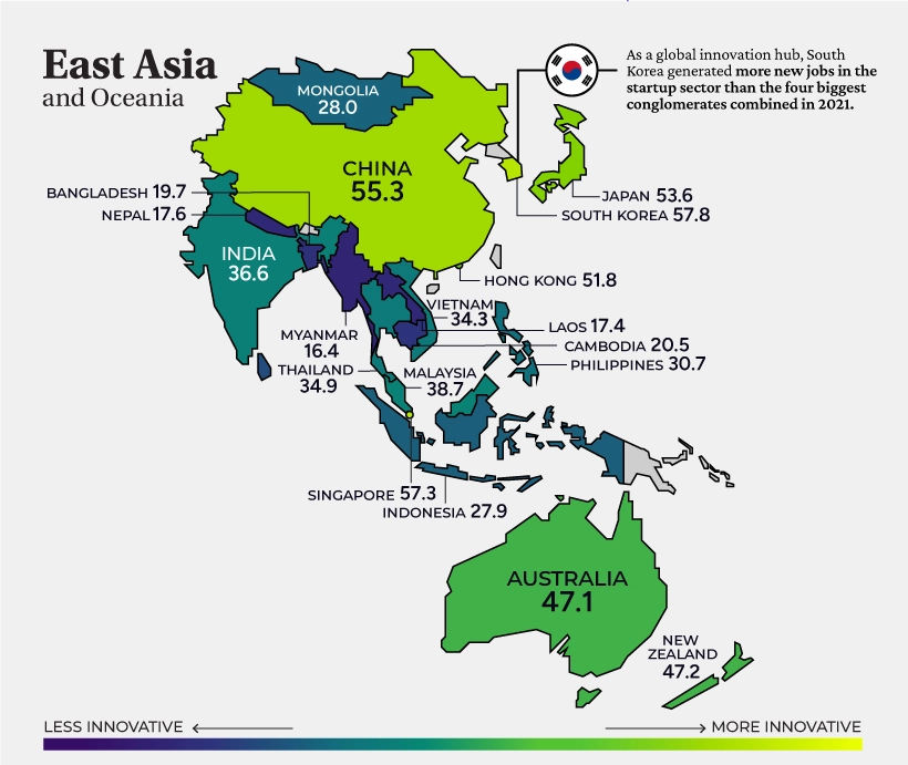 Here are the most innovative countries worldwide and the primary indicators—from patents to R&D spend—driving their breakthroughs.