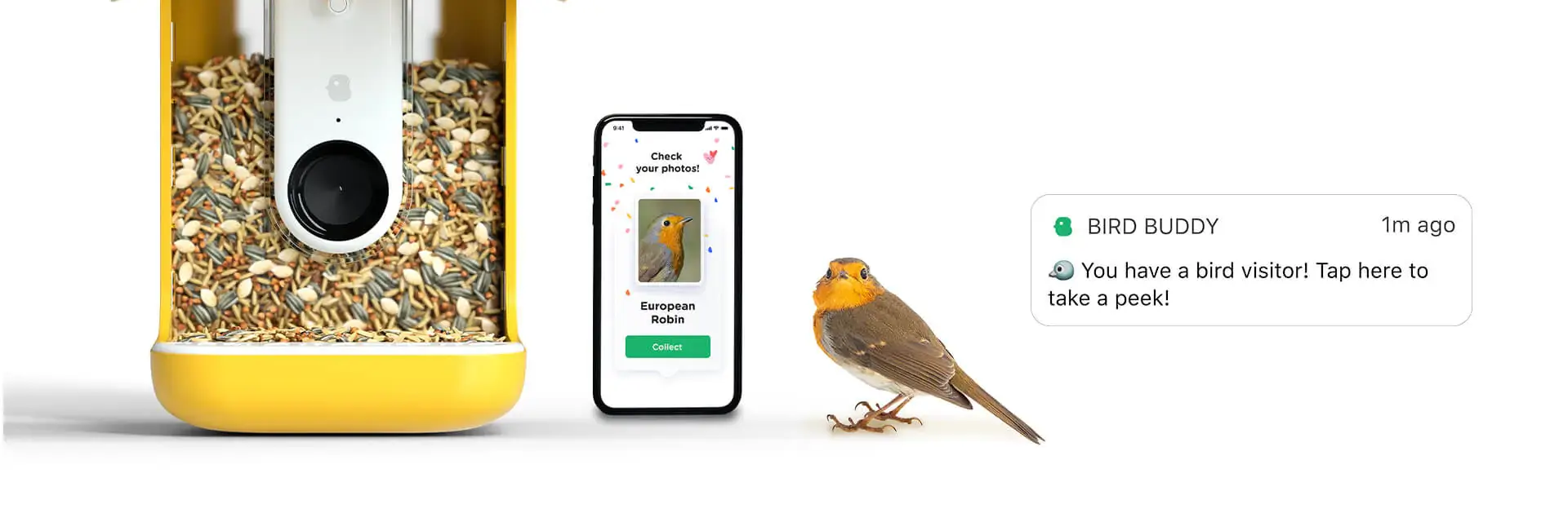 Bird Buddy is a smart bird feeder that notifies you of feathered visitors, captures their photos and organizes them in a beautiful collection!
