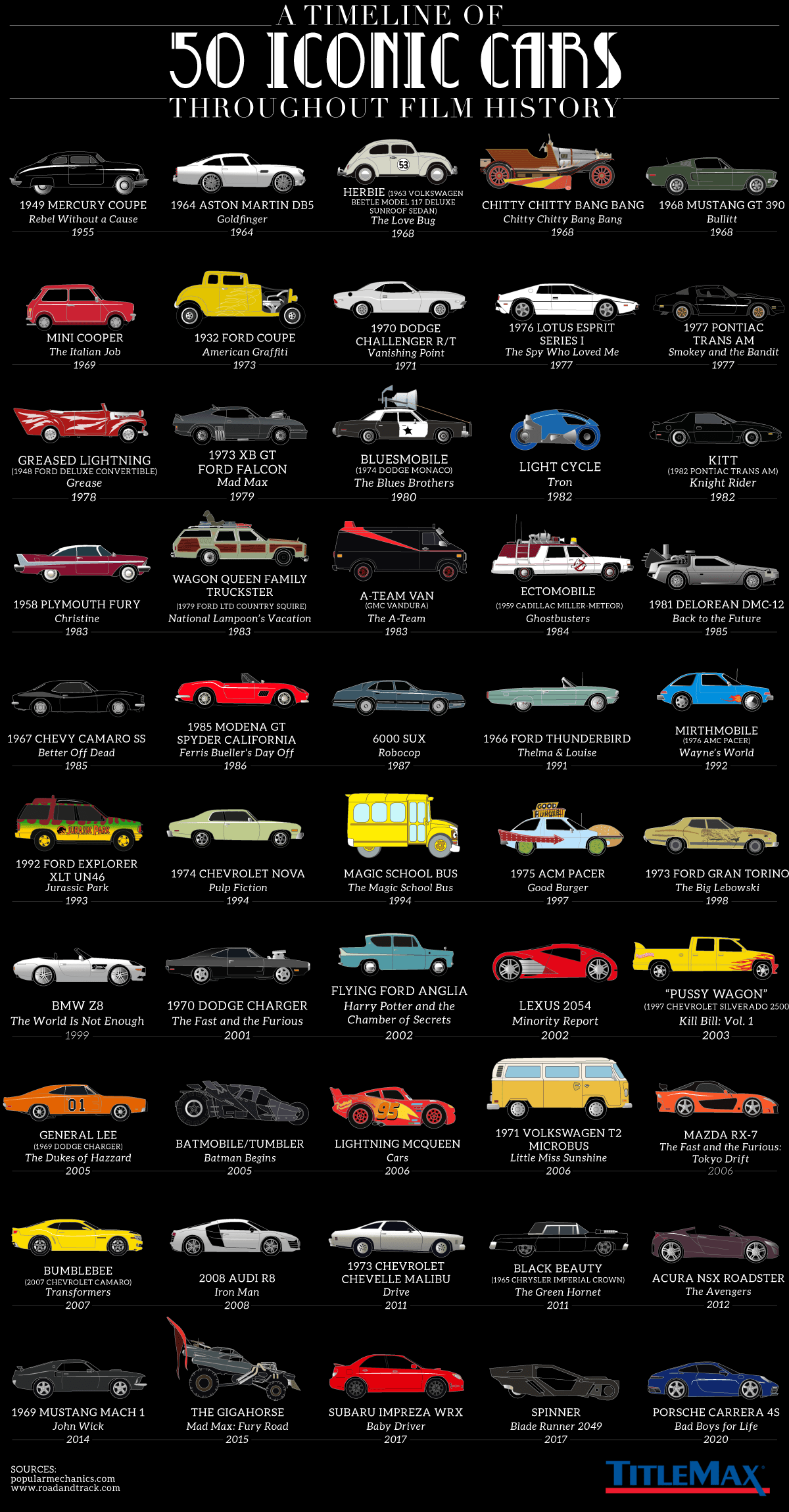 A Timeline of 50 Iconic Cars Throughout Film History | TitleMax