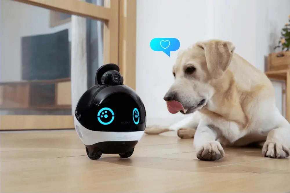 μλλ΄(Enabot)μ΄ CES 2023μμ μ 보μλ ν¨λ°λ¦¬ λ‘λ΄ μ»΄ν¨λμΈ μ΄λ³΄ X(EBO X)λ λλνκ² μ§μμ κ°μν΄μ€ μ€λ§νΈ κ°λμΈμ νλ°©νκ³ μμ΅λλ€. λ κ°μ λ°ν΄λ‘ μ§μμ λμλ€λλ©° μΉ΄λ©λΌ λ±μΌλ‘ μ£Όλ³μ μνμ κ°μνκ³ μλ μ¬λ₯Ό λ΄μ₯ν΄ μ¬μ©μμ μμ± λͺ