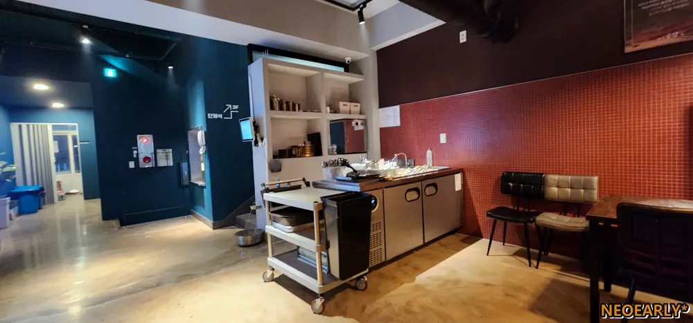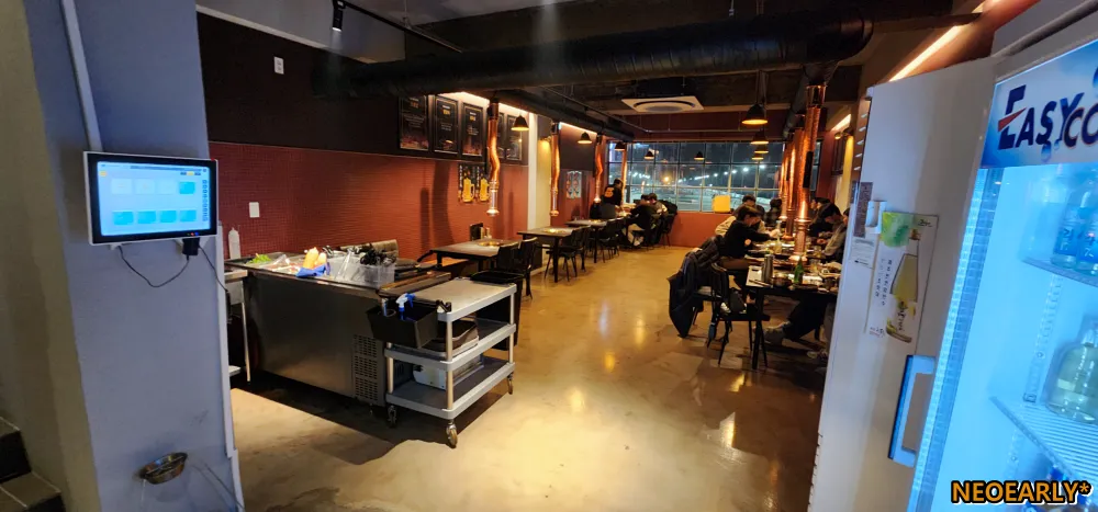 3์ธต ๊ฑด๋ฌผ์ ๋นจ๊ฐ ํ๋ผ์ง ๊ฐํ์ผ๋ก ์์ ์ ์ฌ๋ก ์ก๋ ์ด๊ณณ์์ ํ๋ผ์ง ์ค๊ฒน์ด, ์๊ฐ๋น, ๊ฝ๋ชฉ์ด, ๋ฑ๊ฒน์ด, ์๊ตฌ์ด ๊ฐ์ ๋ผ์ง๊ณ ๊ธฐ๋ฅผ ์ฃผ๋ ฅ์ผ๋ก ํ๊ณ ์๋๋ฐ์. ๊น๋ง ๋ฐค์ด ์๋๋ผ๋ฉด ๋ ์ฐฝ๊ฐ์ ์์๋ค๋ฉด ์ ์ฃผ ๋ฐ๋ค๋ฅผ ๋ด๋ ค๋ค๋ณด๋ฉฐ ๋ง๋ ๊ณ ๊ธฐ๋ฅผ ์ฆ๊ธธ ์ ์๋ ๊ณณ์ด๋๊ตฐ์. ์ ์ ์ฌ๋ํ์๋ ๋ถ๋ค์ด๋ผ๋ฉด ์ด๋ด ์ทจํด์ ๊ทธ๋ฐ ํ๊ฒฝ์๋ ๊ด์ฌ์ด ์์ผ์๊ฒ ์ง๋ง;;;